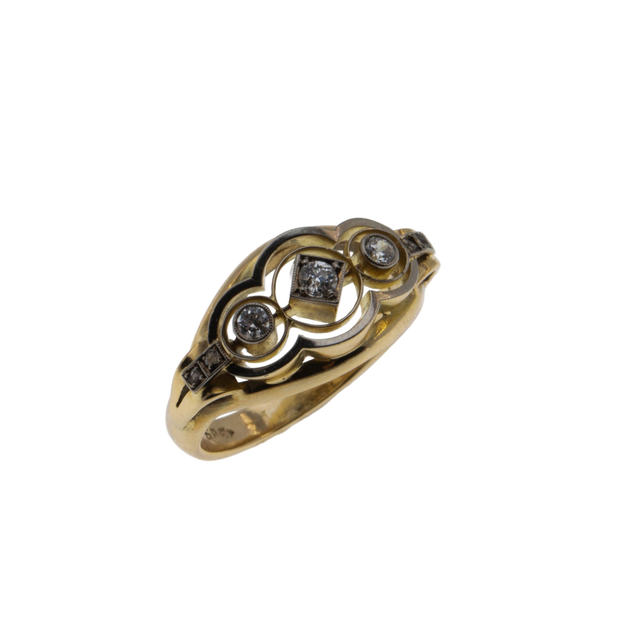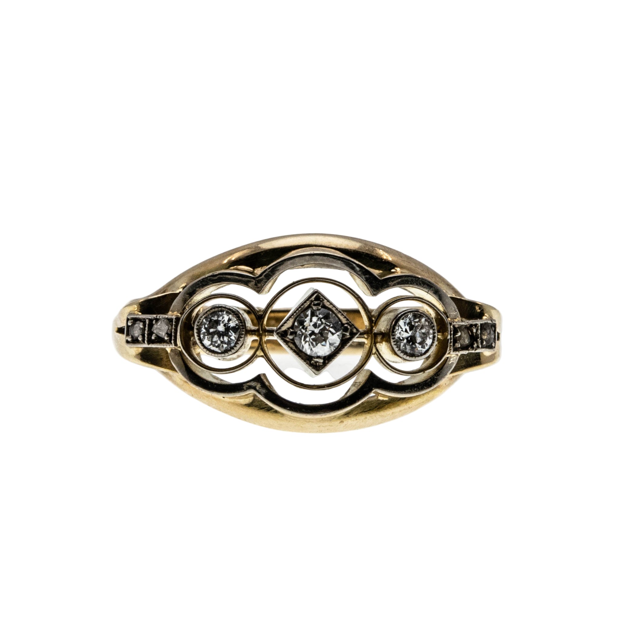 Deco Delight - Art Deco 14K Gold Natural 'Old Mine Cut & Old European Cut' Diamond Ring (ADR293)