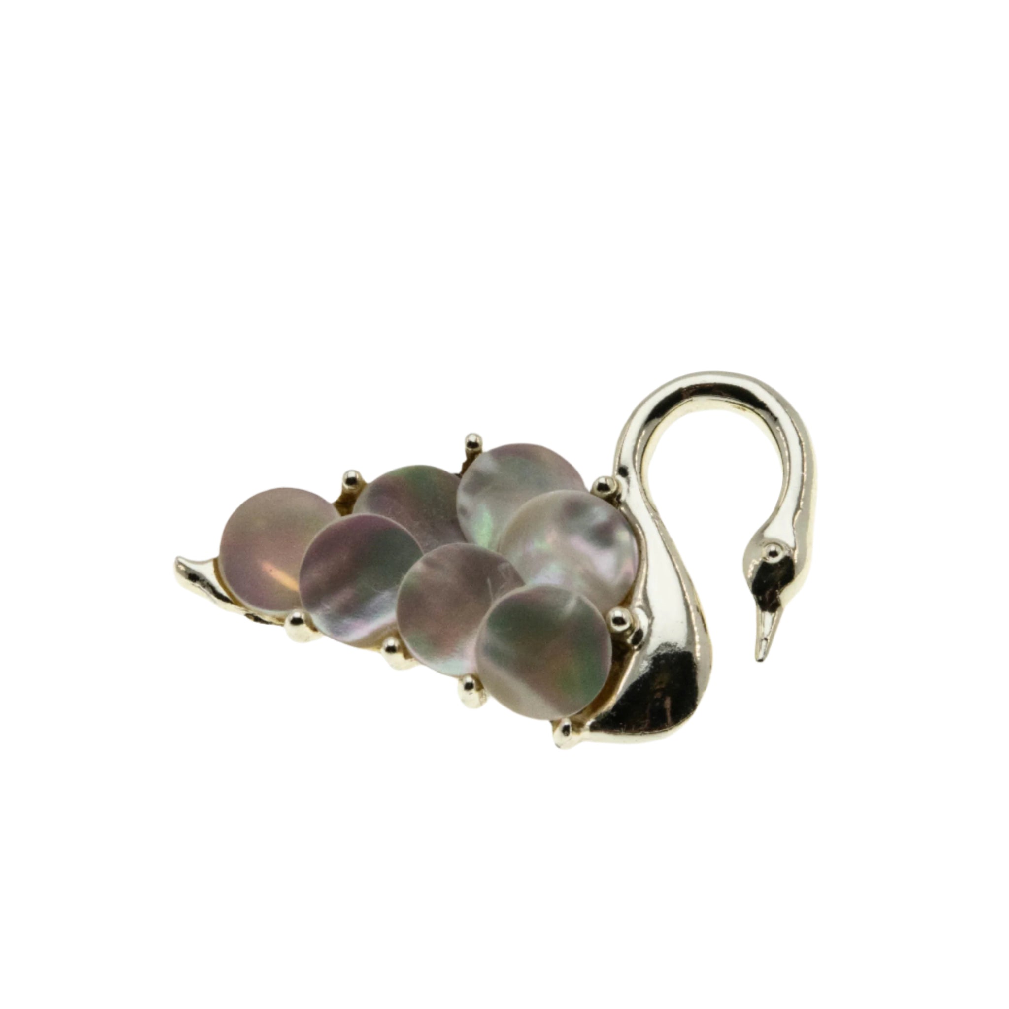Swan Lake - Vintage Gold Plated Genuine Mother Of Pearl Swan Brooch. This pretty brooch is crafted from gold plate over metal. The brooch features seven genuine mother of pearl discs, vintage styling, and quality craftsmanship. This elegant brooch is made in the form of a graceful swan. Which is adorned by beautiful iridescent mother of pearl gems. The brooch has a pin on the back with a secure rotary lock mechanism, in perfect working order. This vintage brooch would make a wonderful gift or addition to any costume jewelry collection.
