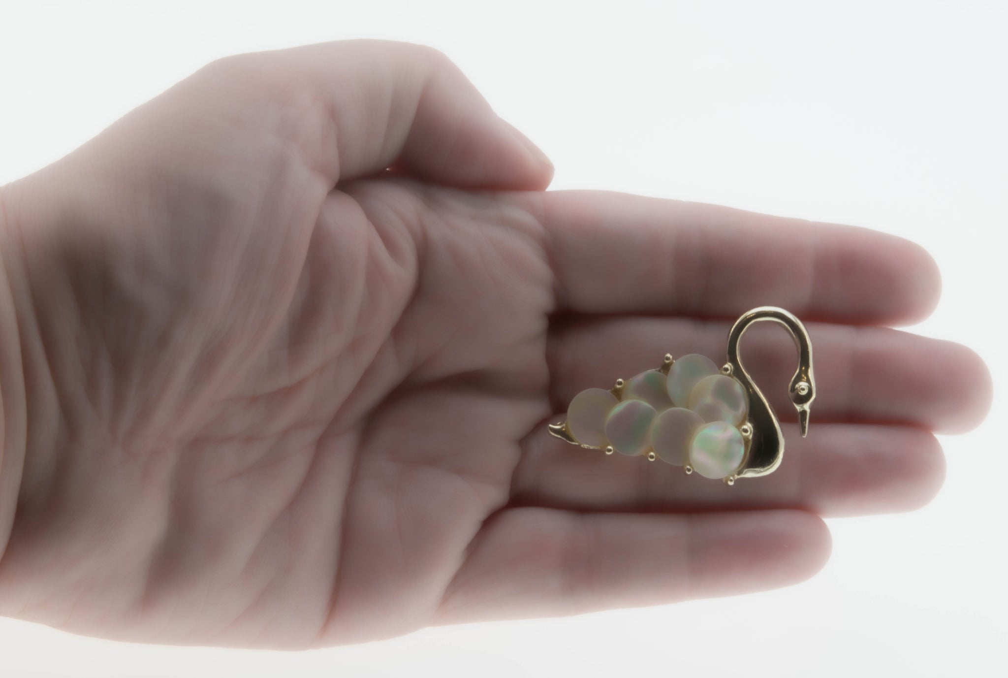 Swan Lake - Vintage Gold Plated Genuine Mother Of Pearl Swan Brooch (VBR300)