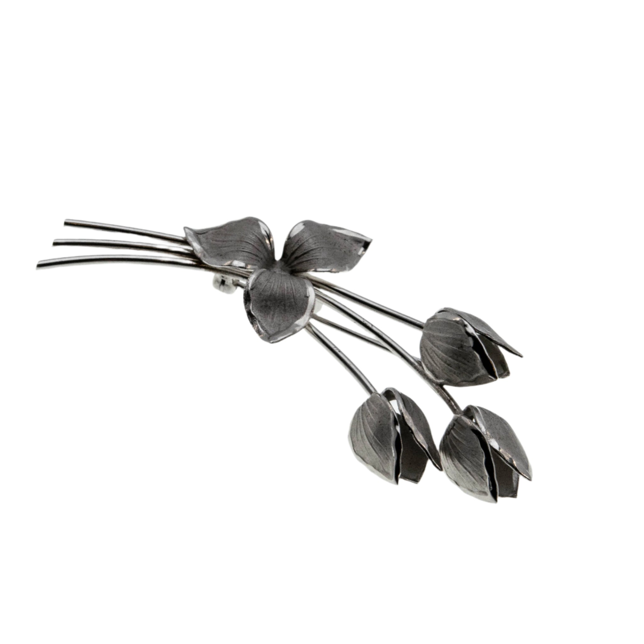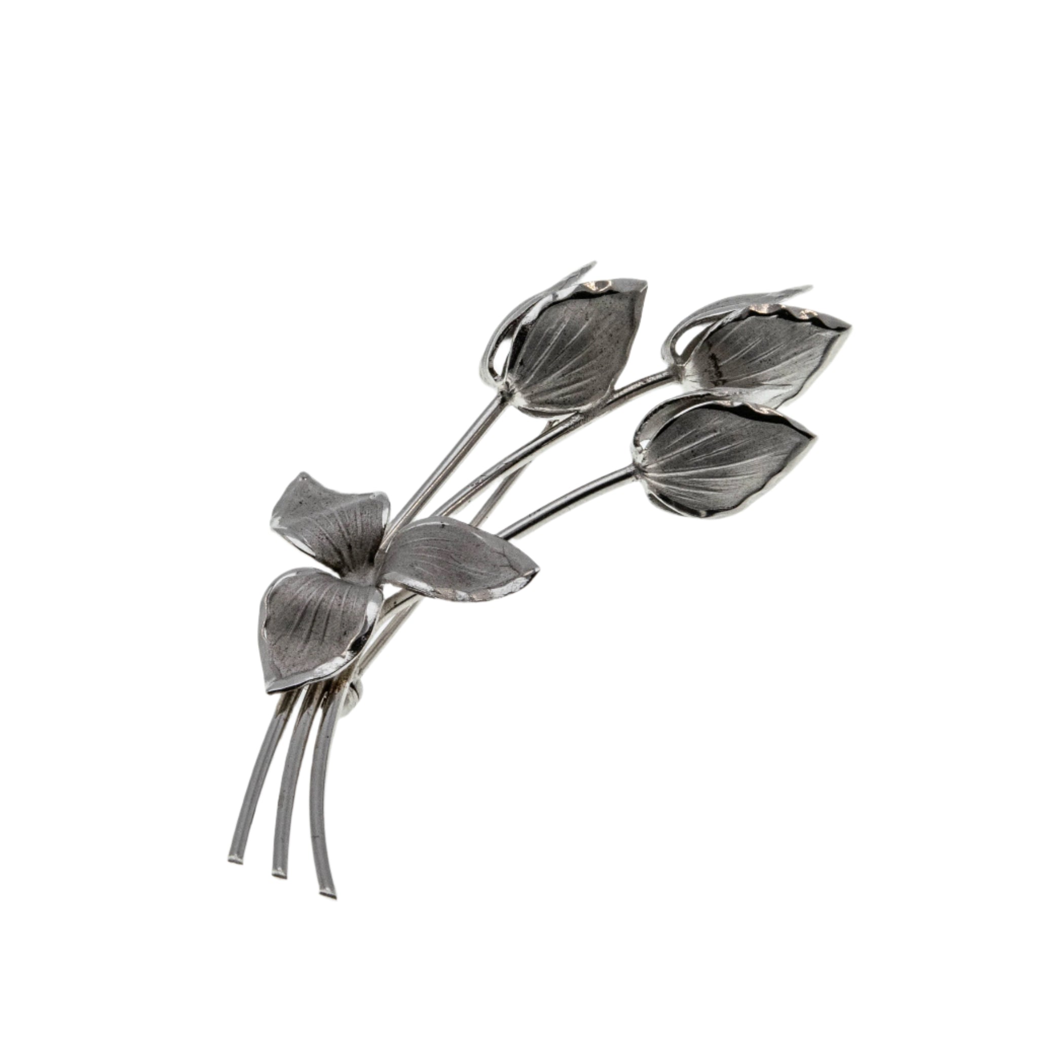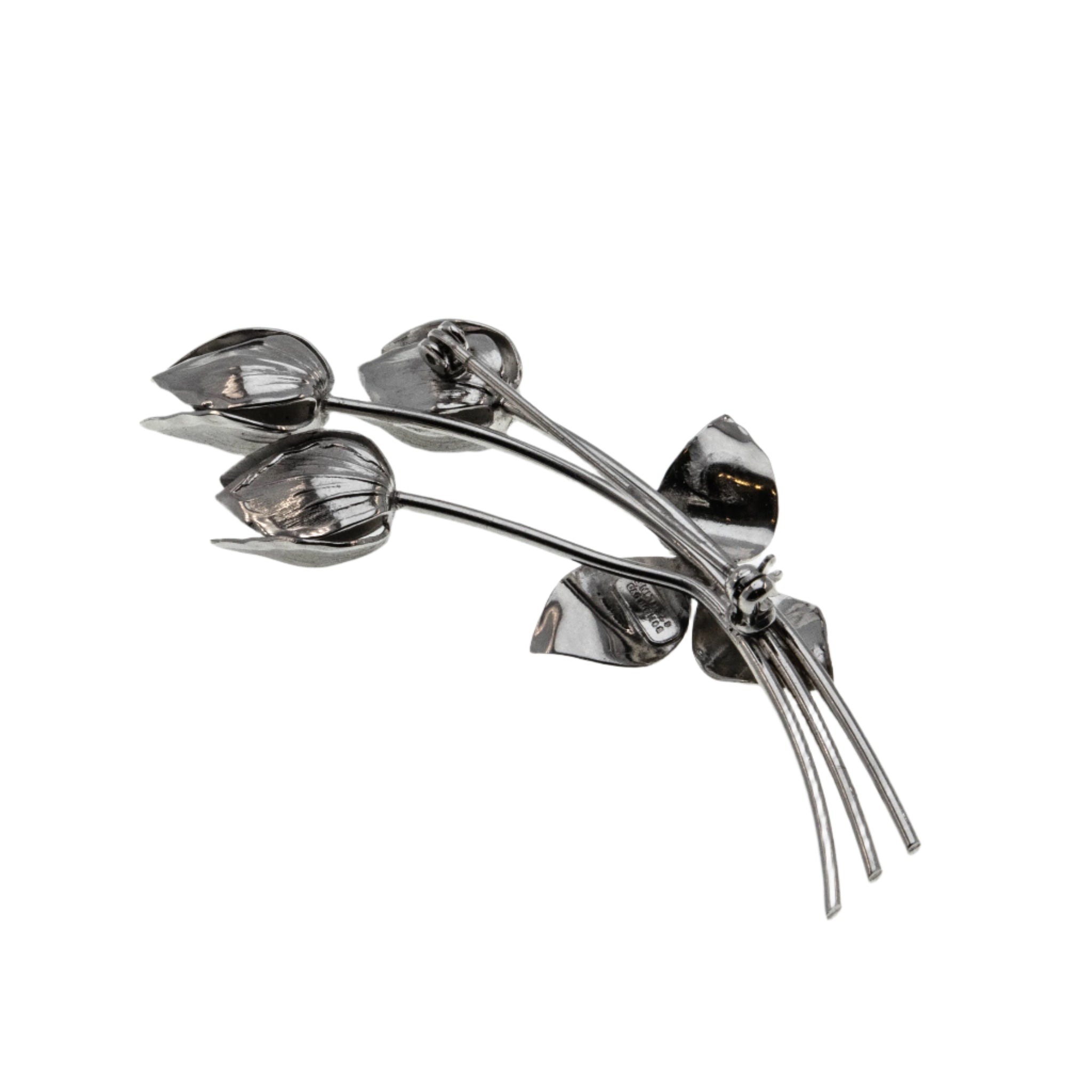 Tulip Fever - Vintage Signed 'Bond Boyd' Sterling Silver Tulip Flower Bouquet Brooch (VBR298)