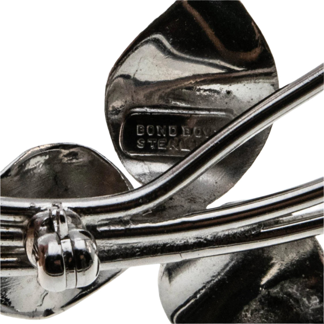 Tulip Fever -Vintage Signed 'Bond Boyd' Sterling Silver Tulip Flower Bouquet Brooch. This gorgeous brooch is crafted from sterling silver, hallmarked STERLING and BOND BOYD. The brooch features, vintage styling, a Bond Boyd signature, and quality craftsmanship. This exquisite brooch is made in the form of a bouquet of tulips, which displays a wonderful combination of texture and detailing. The pin on the back locks in place with a secure rotary type lock. This highly collectible vintage designer brooch looks stunning on a coat, or jacket. So elegant and classy!