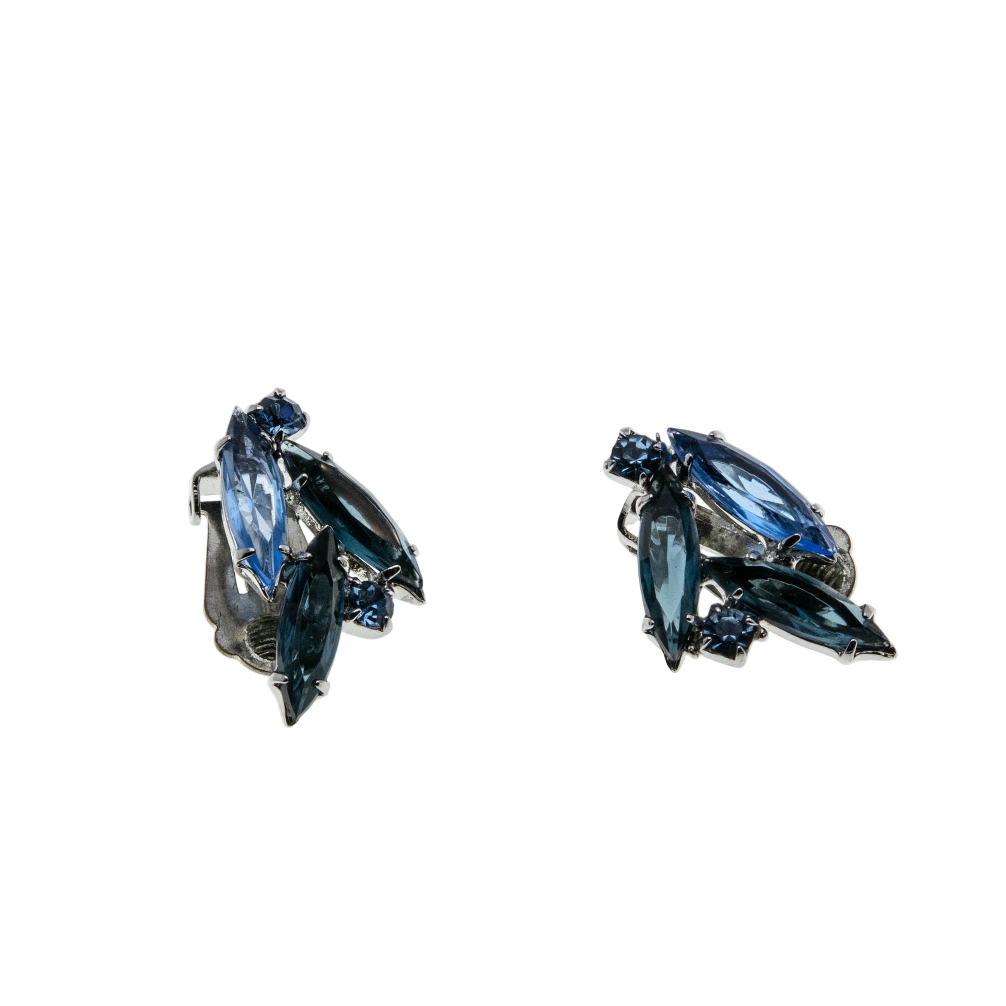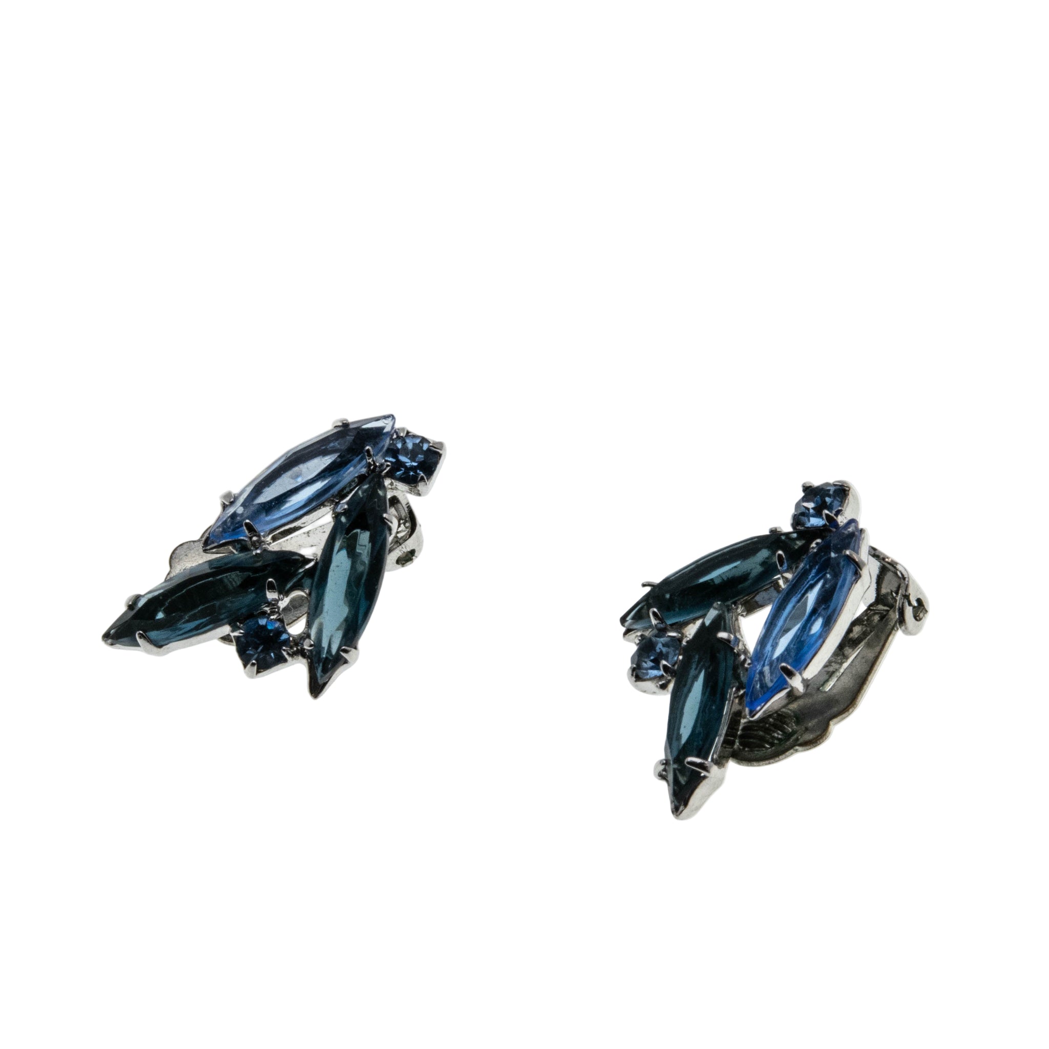 Shades Of Blue - Vintage Rhodium Plated Crystal Rhinestone Clip-On Earrings (VE484)