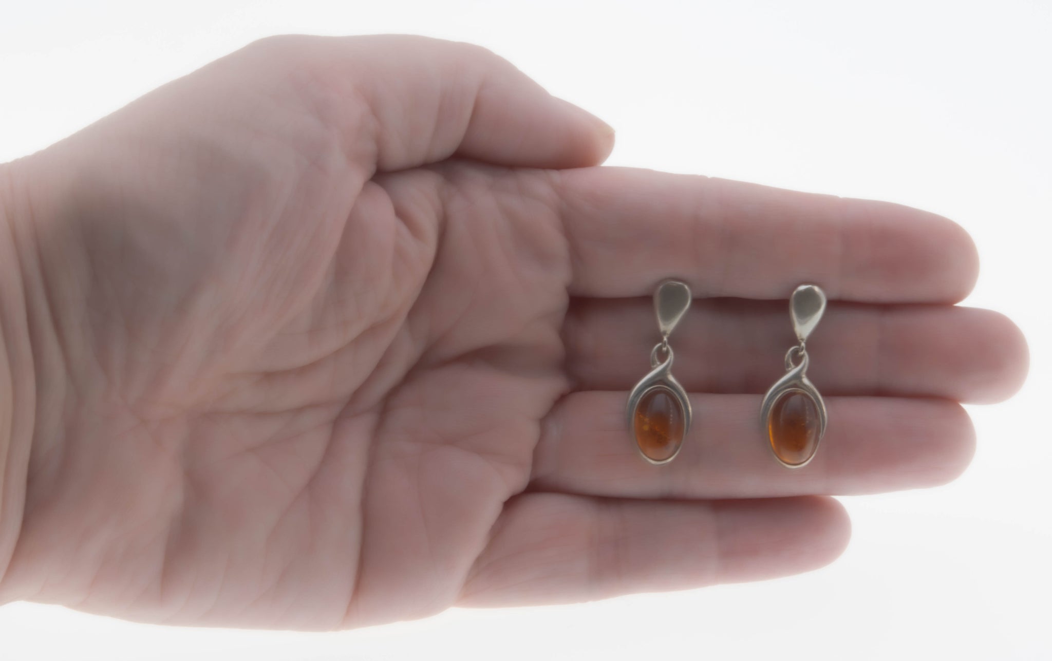 Sunshine Of My Life - Vintage Sterling Silver Baltic Natural Baltic Amber Dangly Earrings. These lovely earrings are crafted from sterling silver, tested, and hallmarked 925 for sterling. Featuring 2 natural oval cabochon Baltic Amber, vintage styling, and quality craftsmanship. The expertly bezel set amber glows like the sun and has a very attractive warm cognac colour, with wonderful natural specimens. The amber is framed with a beautiful simple silver bezel, and a decorative setting, which dangles from a silver surmount. The surmount features posts and secure butterfly backings for pierced ears. These earrings would complete any outfit, truly a perfect gift or addition to any jewelry collection.