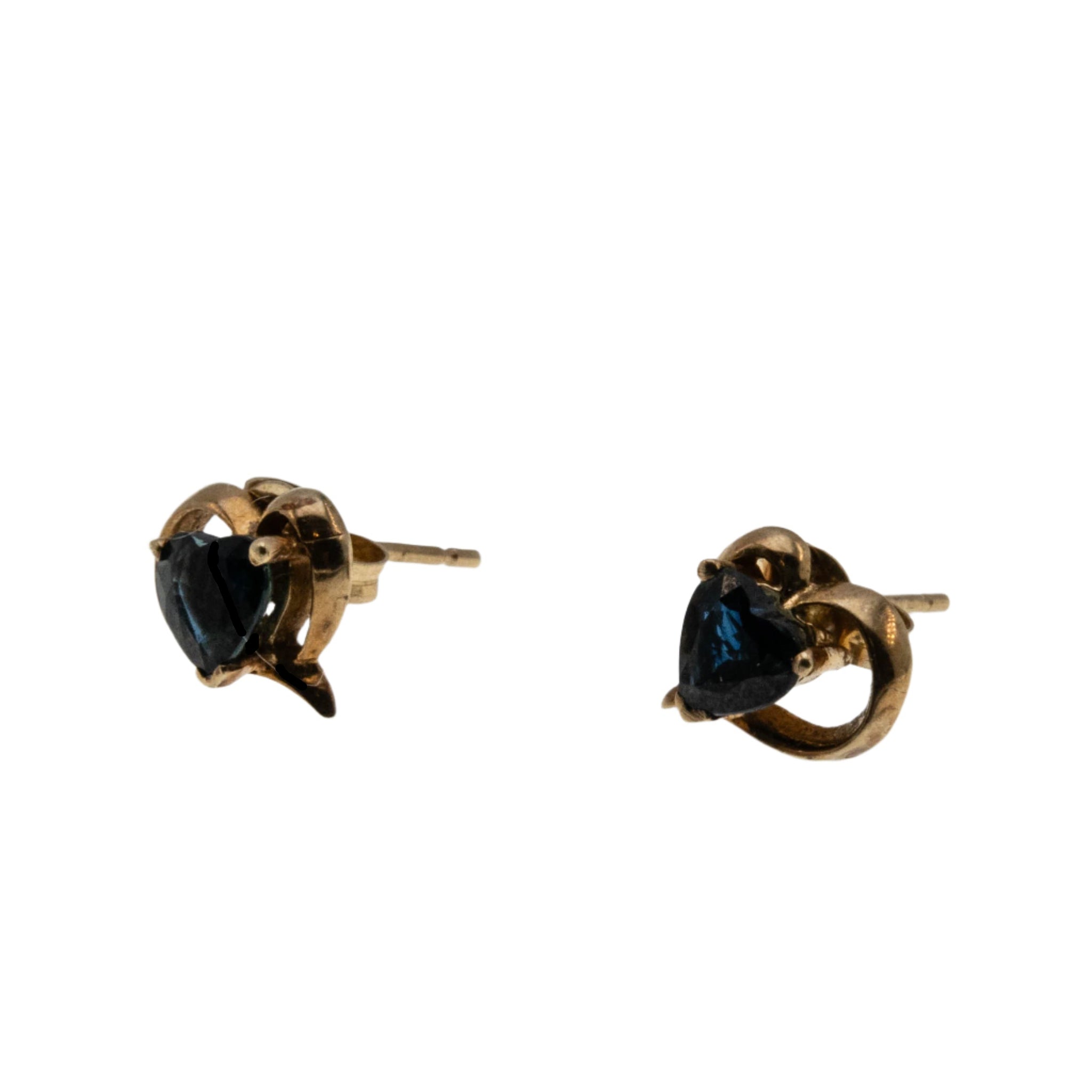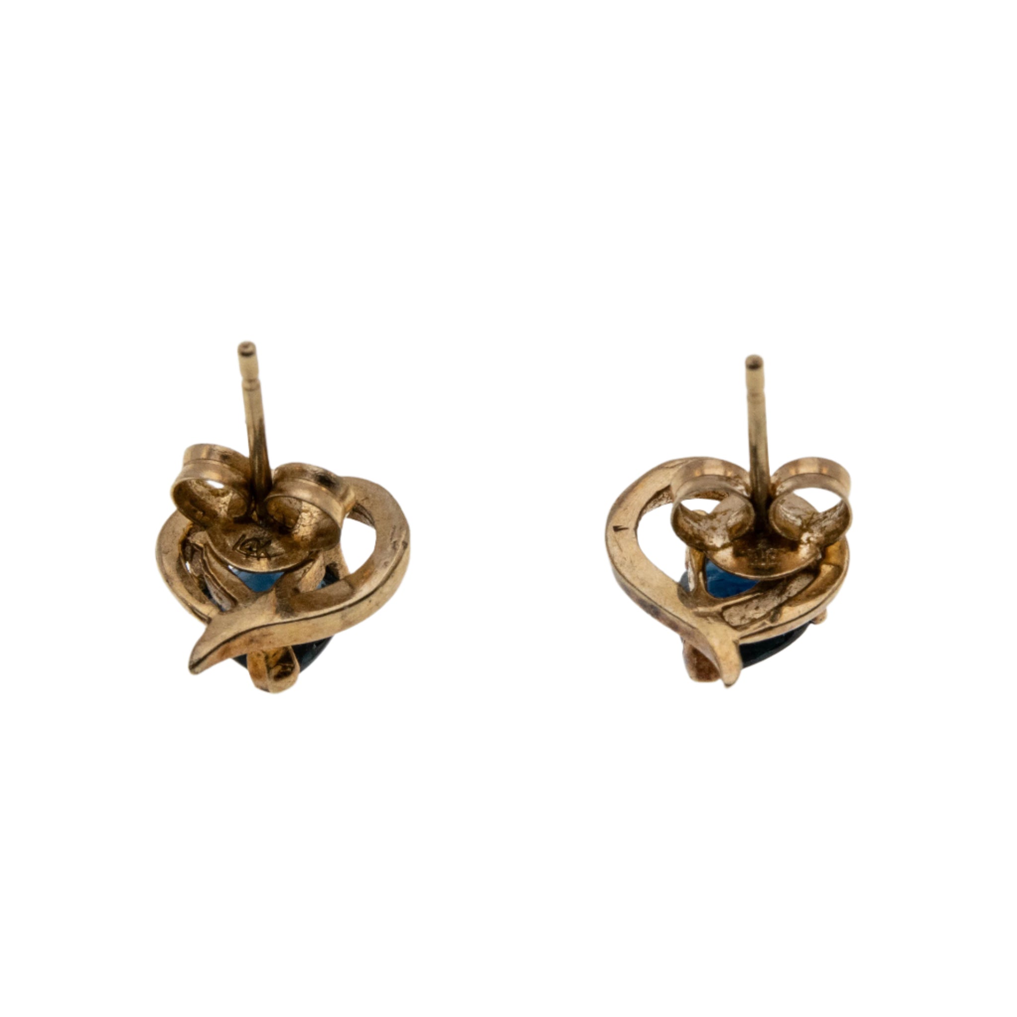 Heart To Heart - Vintage 14K Gold Natural Heart Shape Sapphire Stud Earrings (VE459)