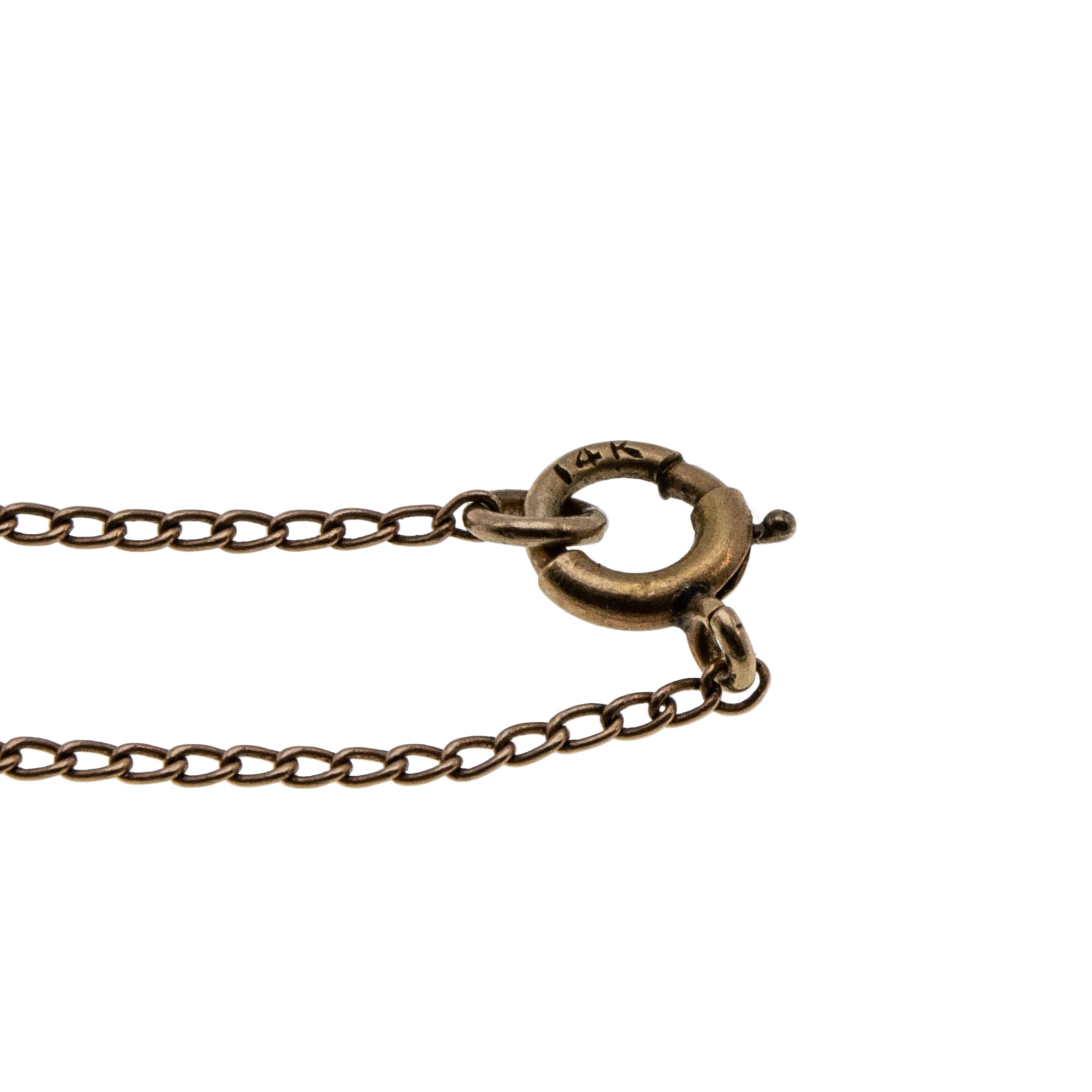 Night Of Intrigue - Edwardian 14K Gold Natural Marquise Black Onyx & Diamond Filigree Pendant. This exquisite pendant is crafted from 14K yellow gold, hallmarked 14K, and 585 (European hallmark for 14K). This pendant features one natural marquise black onyx, one natural single cut diamond, Edwardian era styling, and high quality craftsmanship. This wonderful pendant is comprised of a beautiful marquise shaped black onyx, which is set with a glowing accent diamond in the centre of the black gemstone. The black onyx is bezel set, and surrounded by exquisite fine filigree decoration. The pendant is accompanied by (what looks to be) its original chain. The chain is a curb link design, and features the original spring ring clasp in perfect working order. This antique Edwardian era pendant would make a perfect addition to any antique jewelry collection.