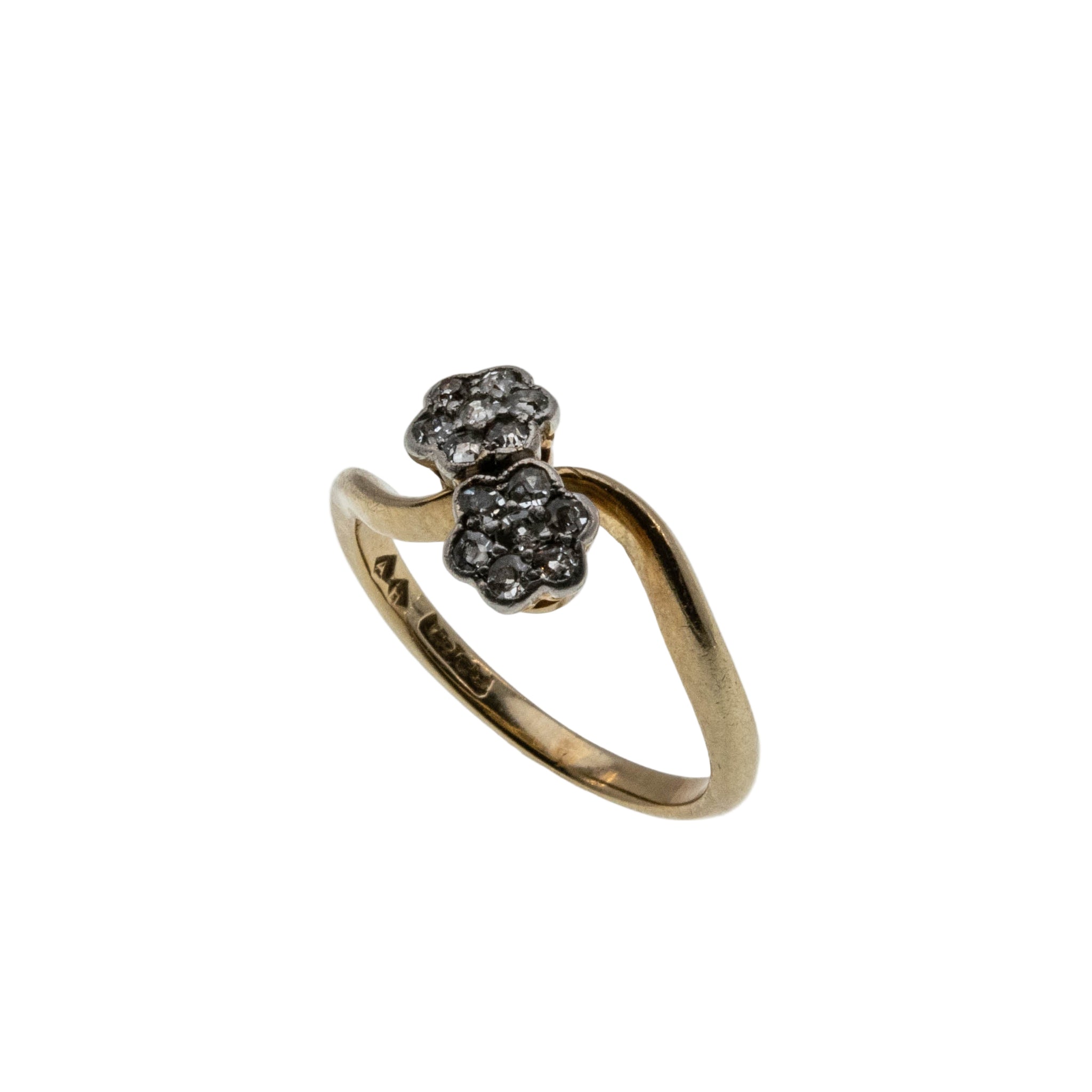 Toi Et Moi - Edwardian English 18K Gold Natural Old European Cut Double Daisy Cluster Ring (EDR099)