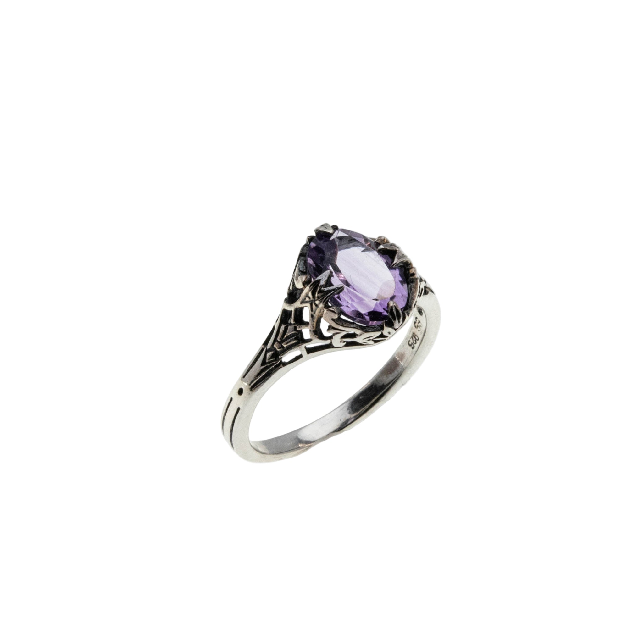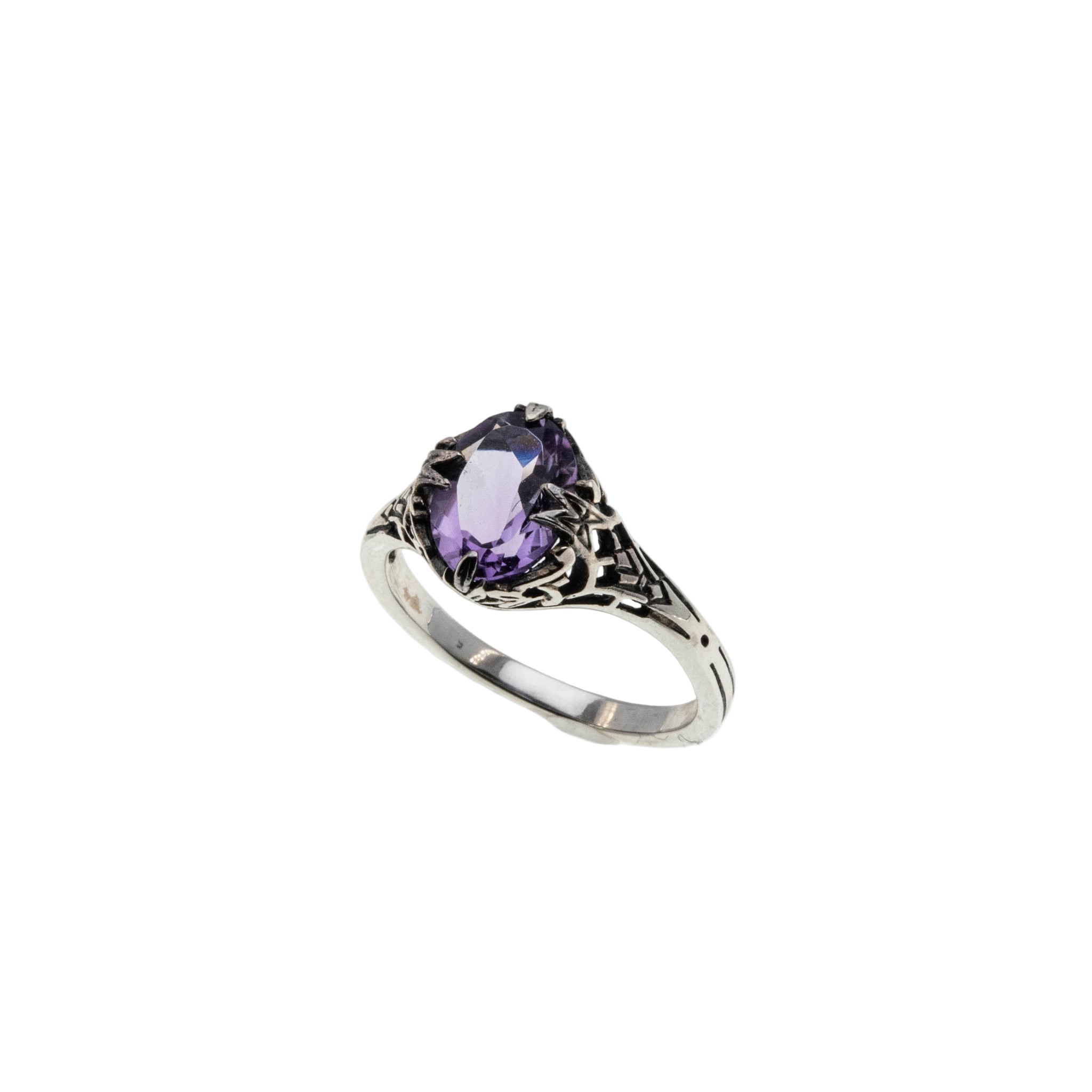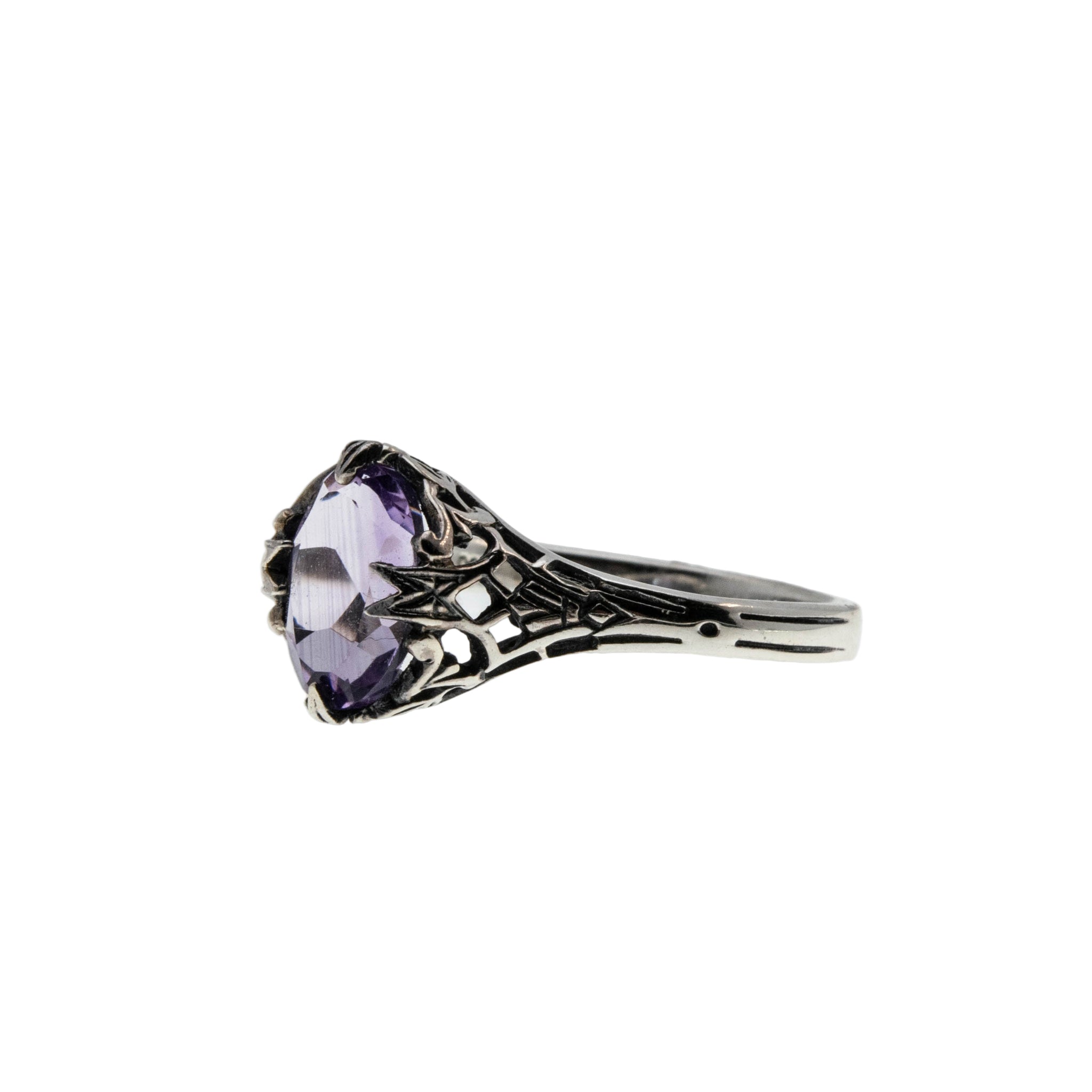 Sweet Lavender - Estate Sterling Silver Natural Amethyst Filigree Ring (ER421)