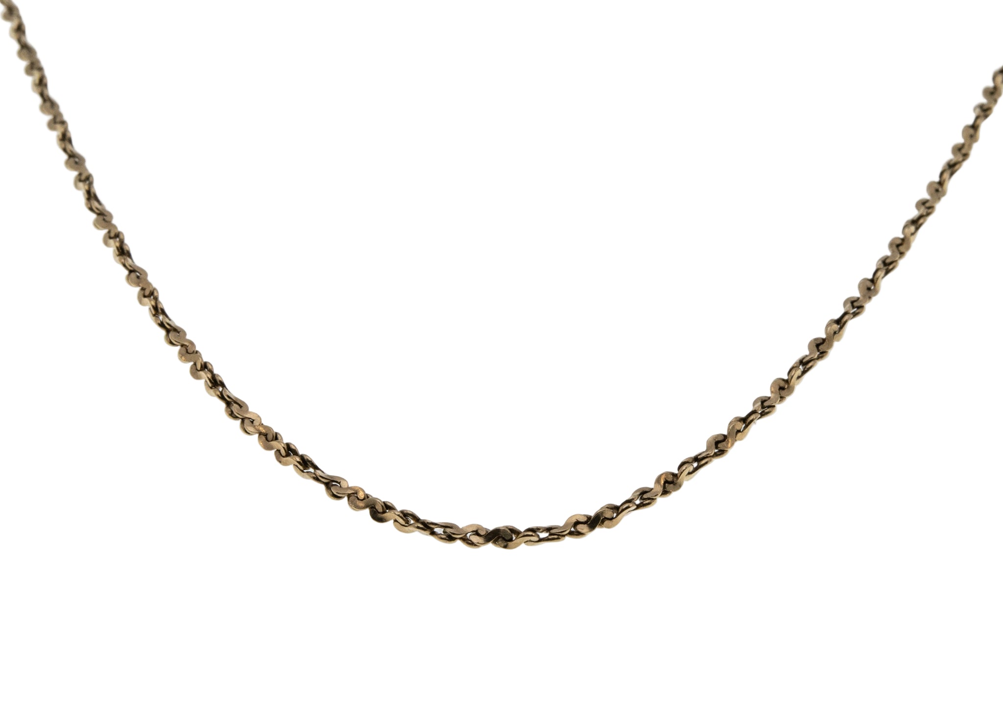 Golden Classic - Vintage 10K Gold Twisted Serpentine Chain Necklace . This lovely chain is crafted from 10K yellow gold, hallmarked 10K.  The chain features a vintage era design, and quality craftsmanship. This chain is created in the twisted serpentine chain design, which displays a beautiful sparkle. The chain is durable, and sturdy, therefore it can be worn on its own or with a pendant. The chain features a secure spring ring clasp, which is in perfect working order. This vintage era chain is so versatile that it can be worn day or night, with anything, and everything!