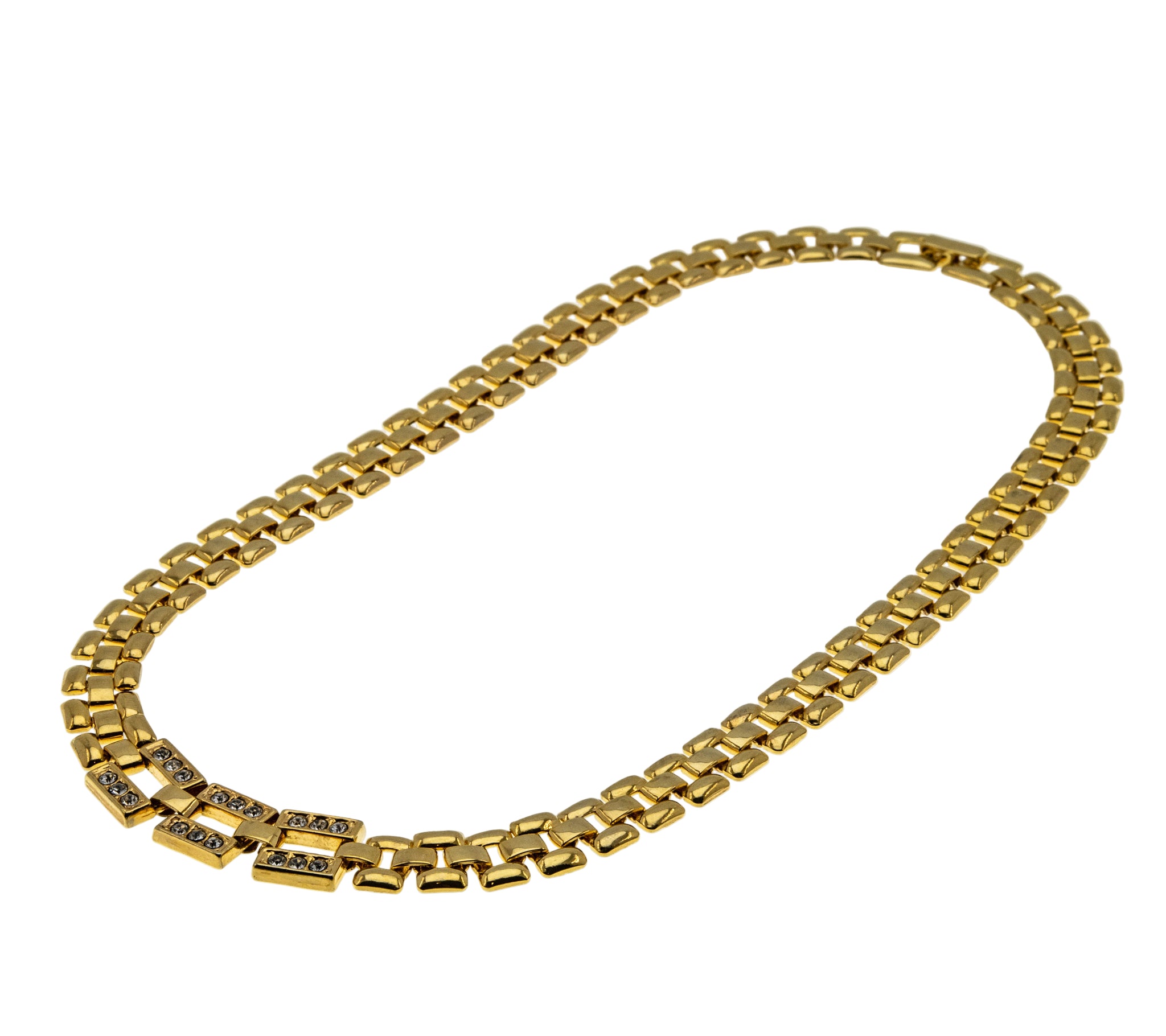 Retro Magic - Vintage Gold Plated Crystal Rhinestone Fancy Link Collar Necklace (VN232)