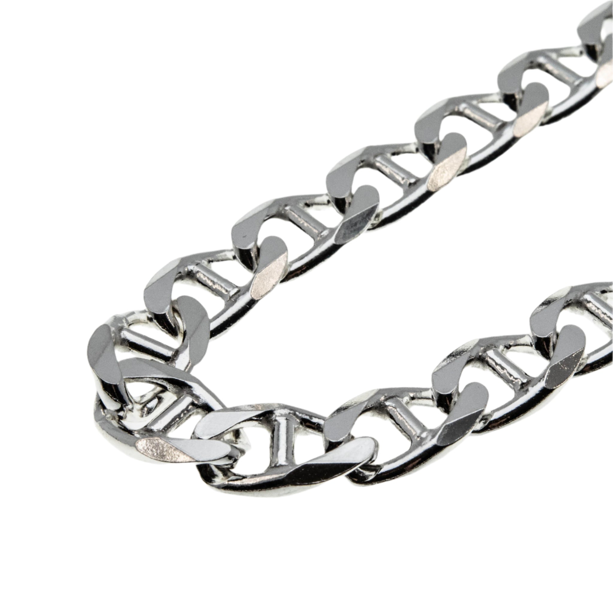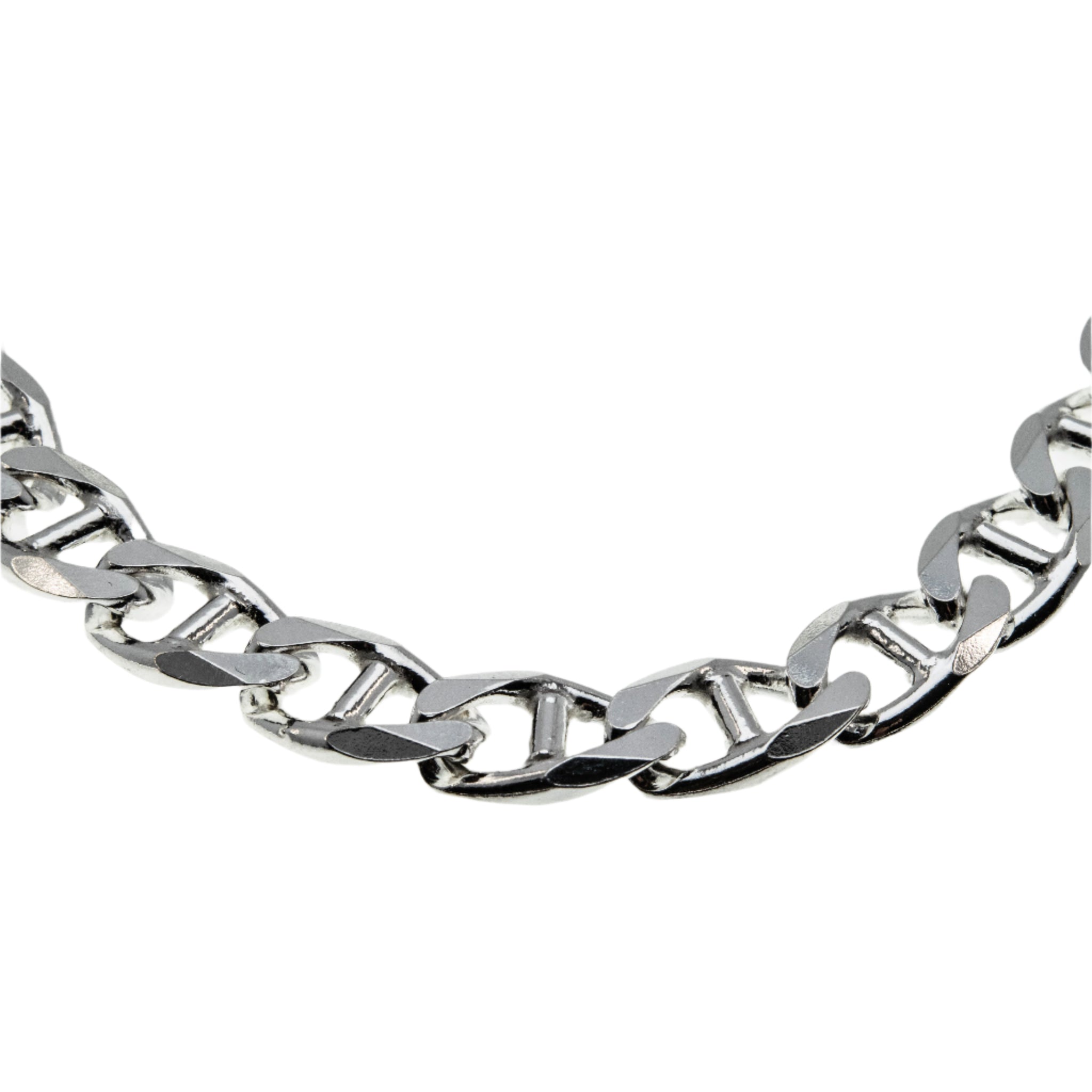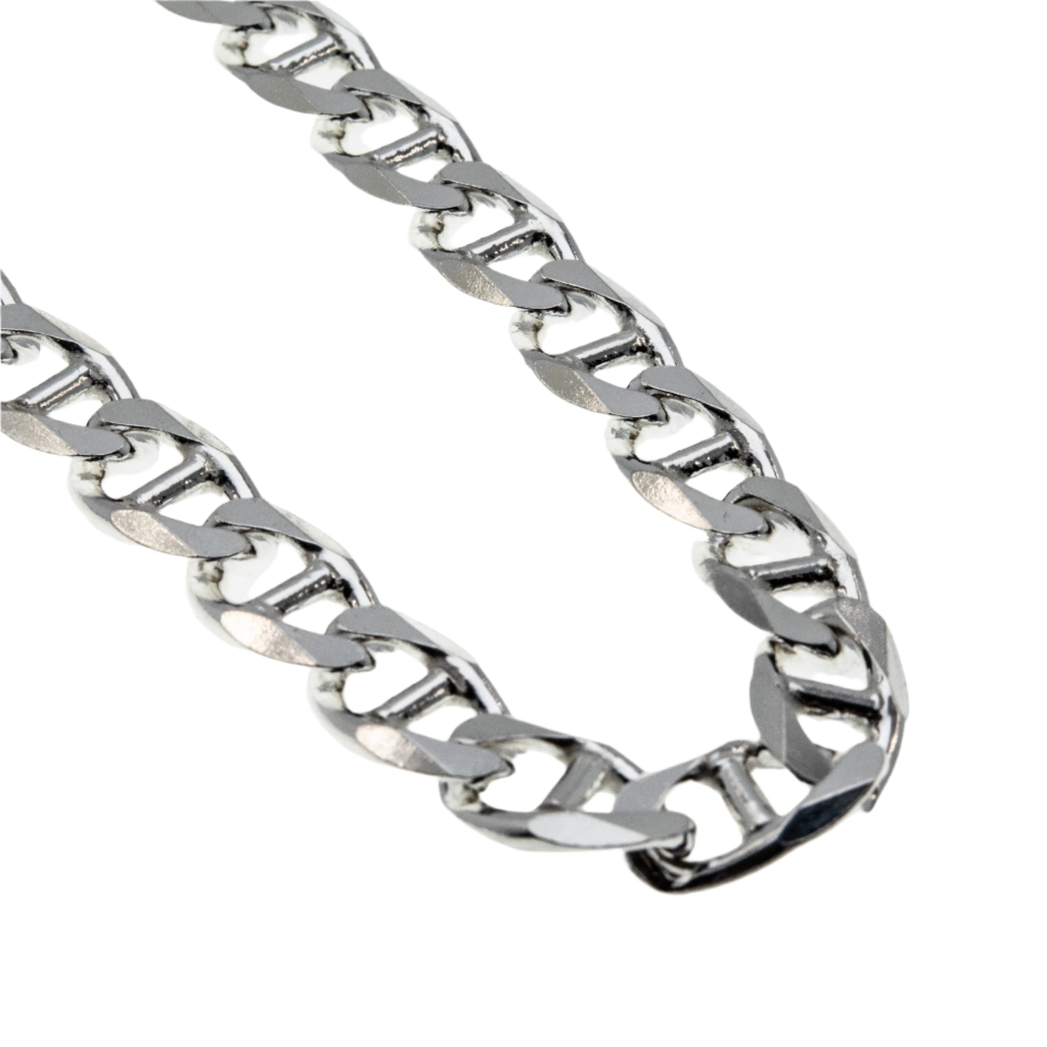 Mariner chain links, also known as anchor chains, have a history rooted in nautical culture and practical use on ships. Their design, featuring interlocking oval or round links with a bar across the middle, is inspired by the chains used to secure anchors. Initially, they served a functional purpose, but their strength and unique design eventually caught the eye of jewelers and became popular in fashion.
