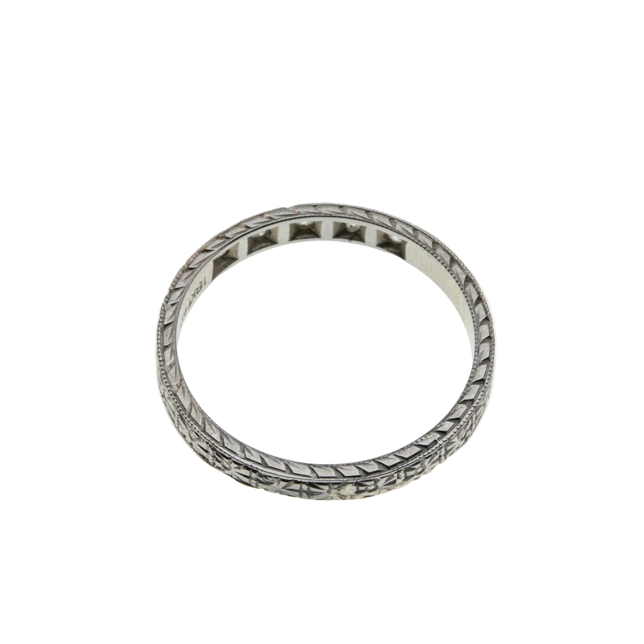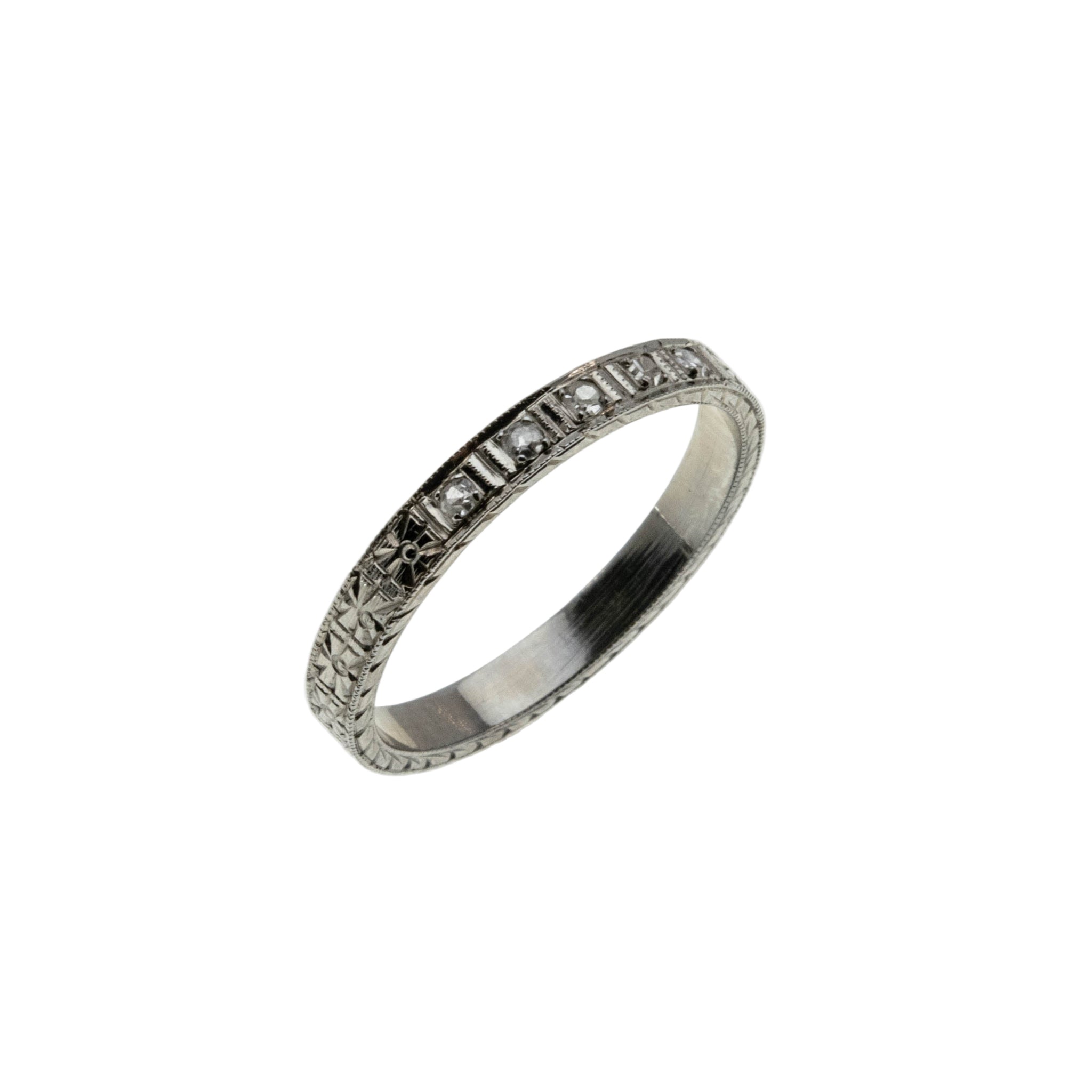On This Day In 1925 - Art Deco 18K White Gold Natural Diamond Engraved Wedding Band Ring (ADR291)