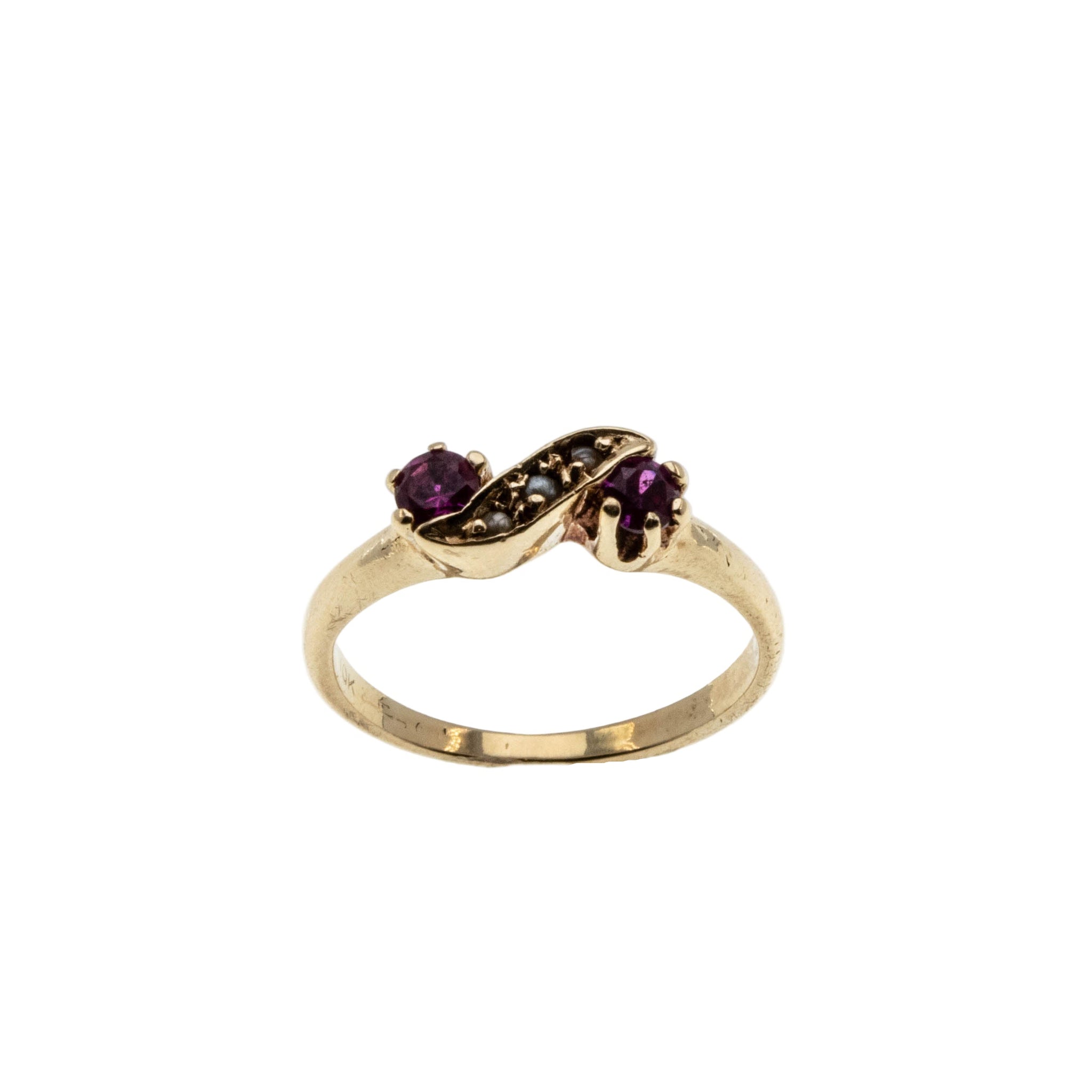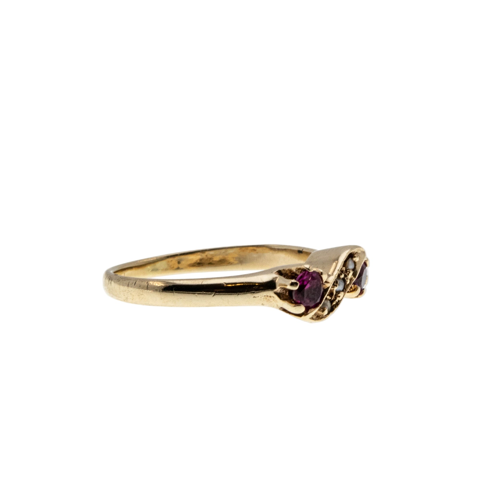 Victorian Sweet - Victorian 10K Gold Ruby & Natural Pearl Ring (VIC180)