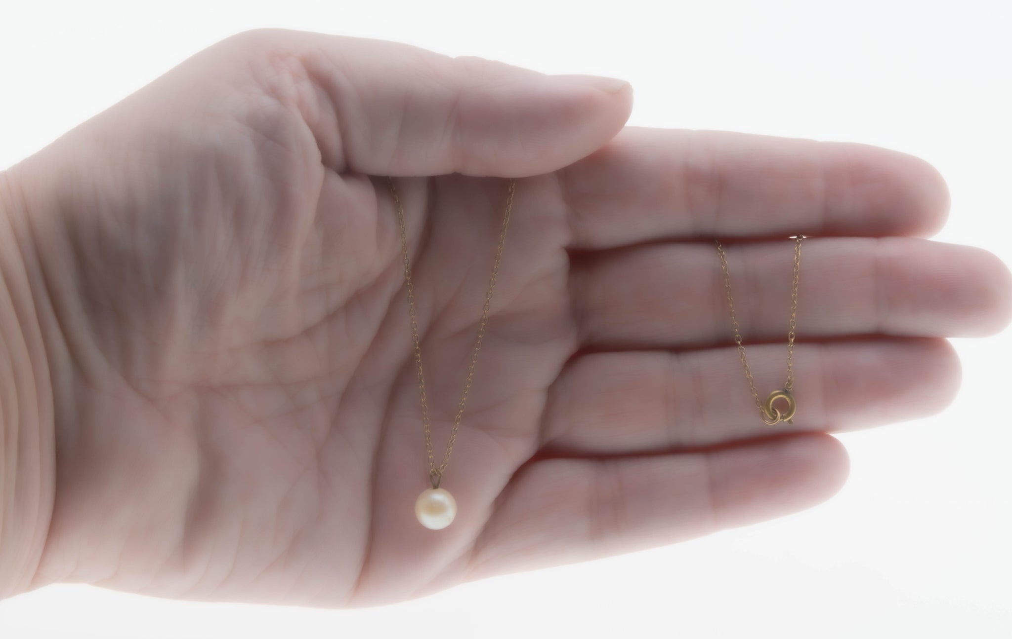 Snow - Vintage Gold Filled Genuine Cultured Pearl Pendant & Chain. This lovely pendant and chain is crafted from Gold Fill. Featuring one genuine cultured pearl, classic vintage styling, and quality craftsmanship. This beautiful lustrous pearl is white in color, displaying a slightly pinkish/champagne overtone. The pendant features a loop style bale, so a chain can be put through smoothly. The chain is a belcher design , which looks perfect with the simple and elegant pearl pendant. The chain has a spring ring clasp, which is in perfect working order. This vintage pendant would make a wonderful versatile gift , or a classic addition to any fine jewelry collection.