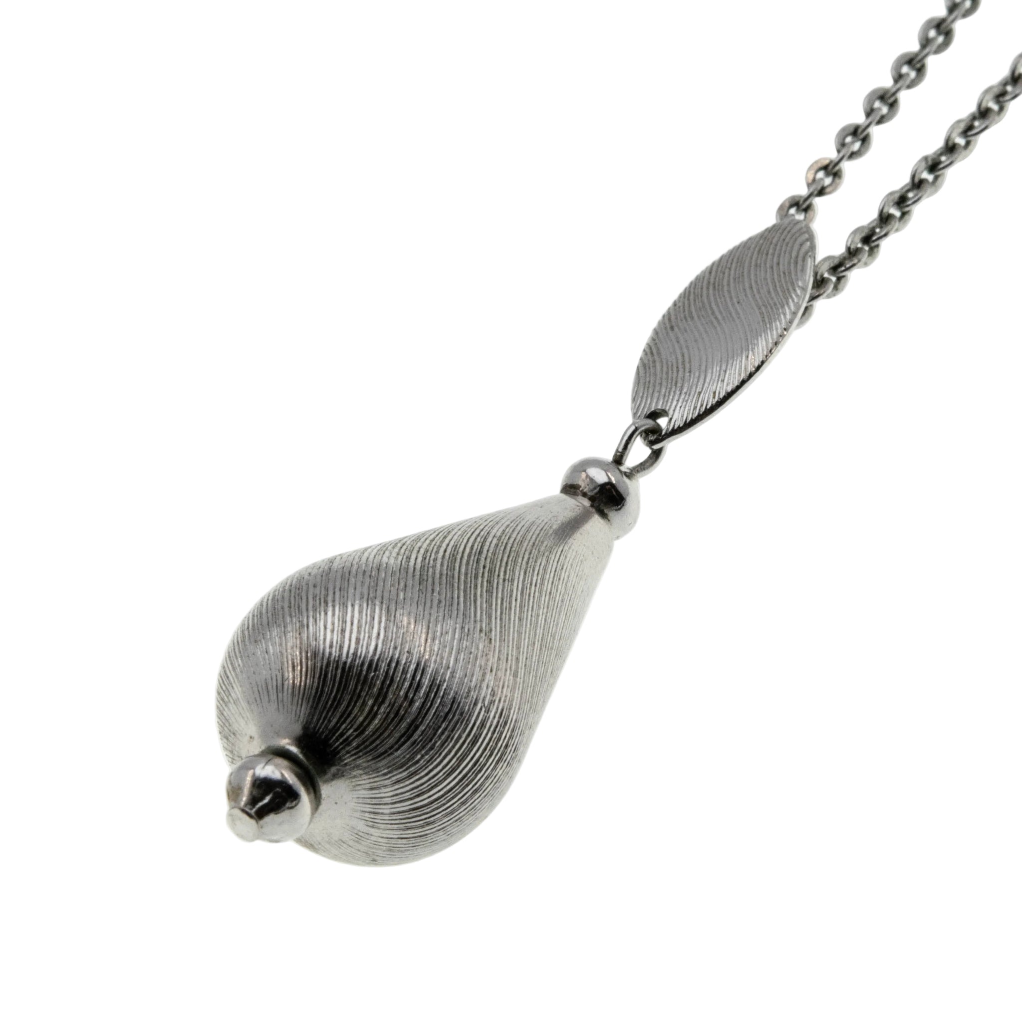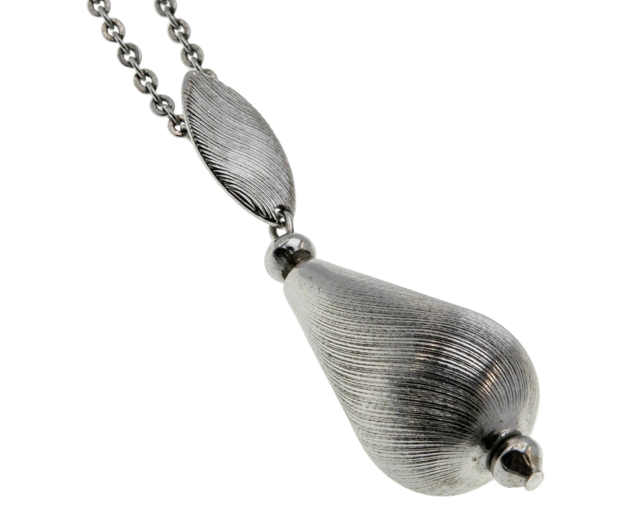 Tear Drop - Vintage Silver Tone Drop Pendant & Chain. This pretty pendant is crafted from a silver metal. The pendant features vintage styling, and quality craftsmanship. This lovely pendant is created in the shape of a dimensional tear drop, showcasing a wonderful swirly textured finish. The bale is marquise shaped, which exhibits the same textured finish, as the drop The chain is a vintage belcher design, featuring a secure spring ring clasp, which is in perfect working order. This vintage pendant is classic and versatile, truly a great addition to any vintage costume jewelry collection.
