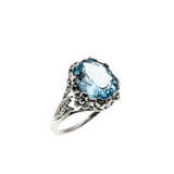 Victorian Art Nouveau Revival - Estate Sterling Silver Natural Sky Blue Topaz Floral Open-Work Ring (ER391)