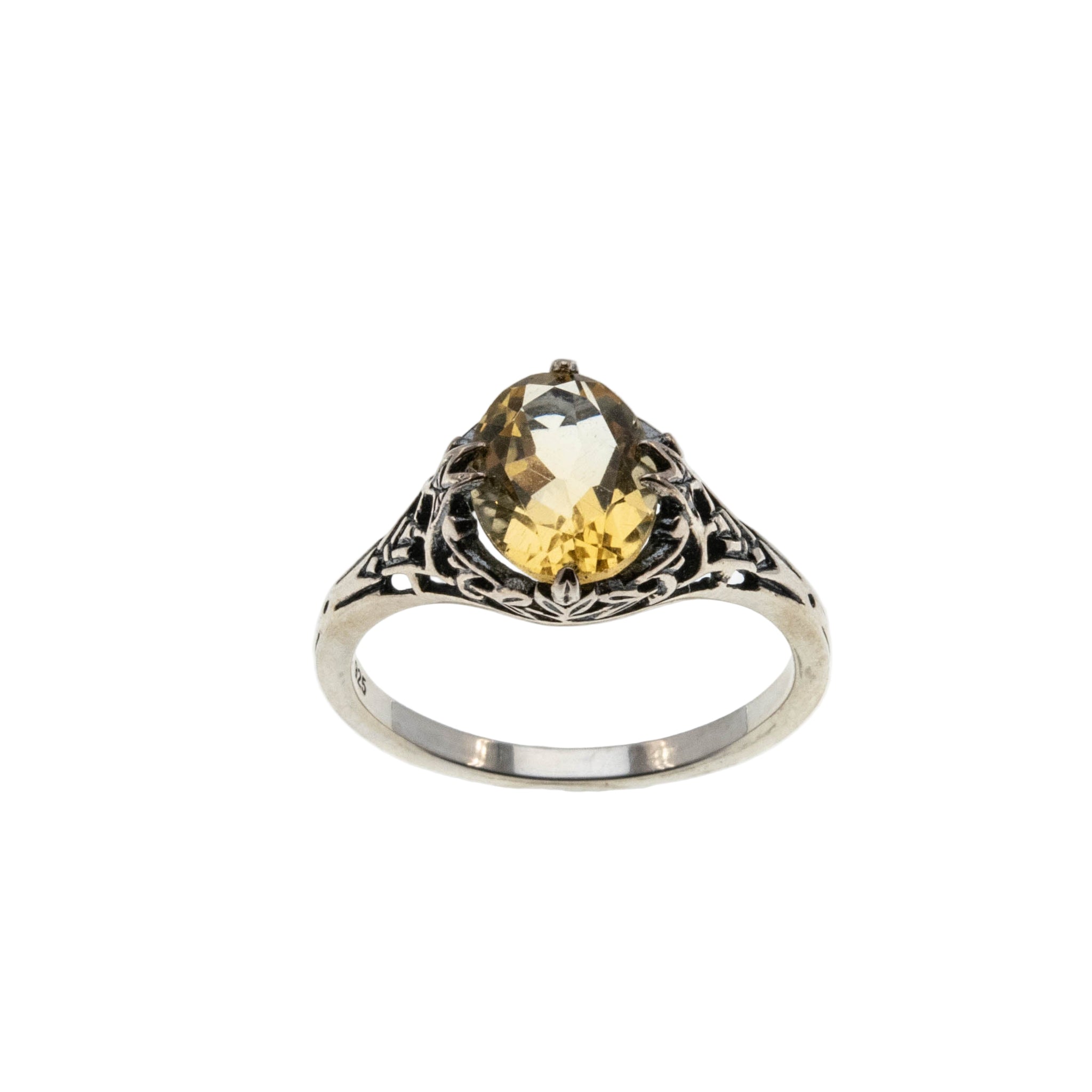 Hello Sunshine - Estate Sterling Silver Natural Citrine Filigree Ring (ER439)