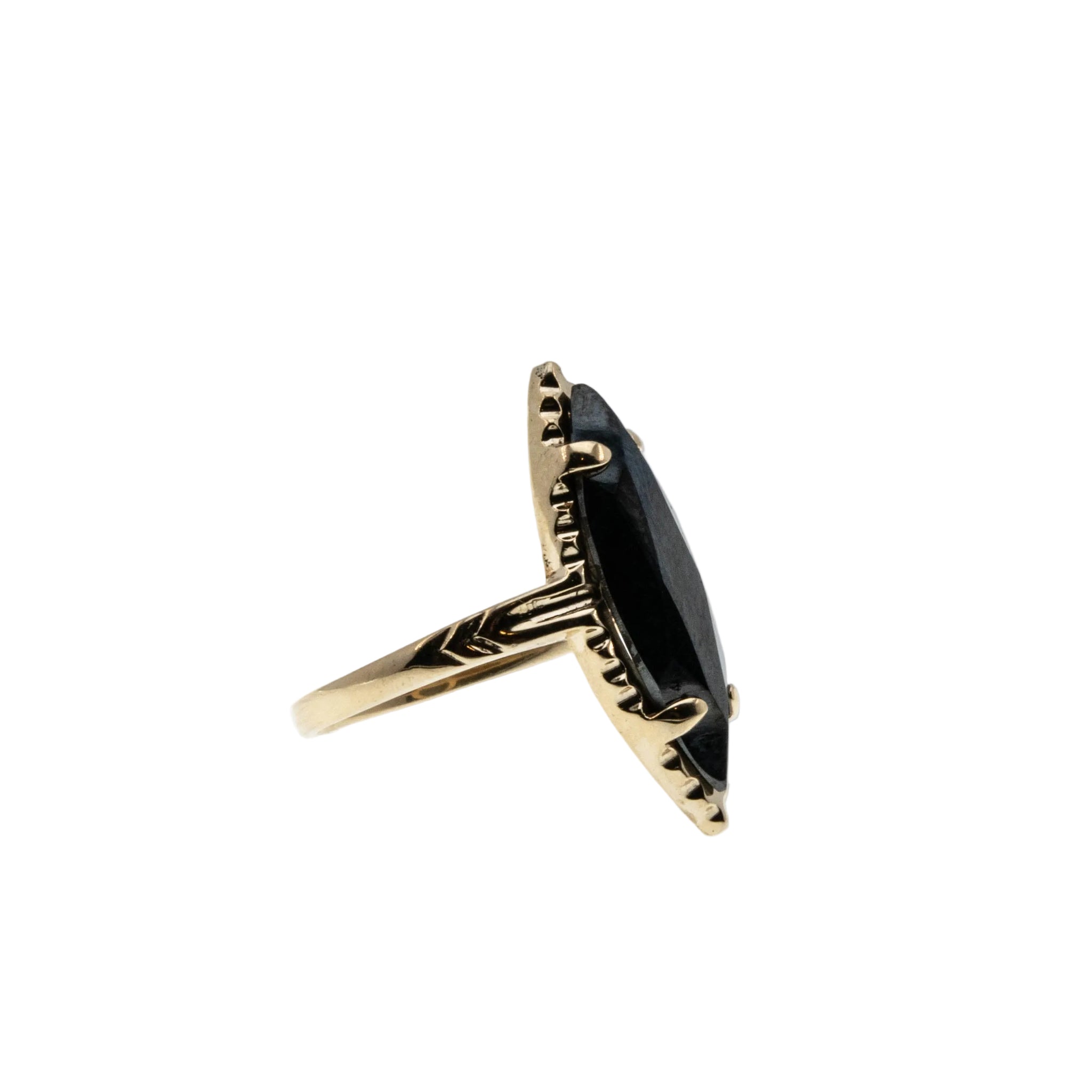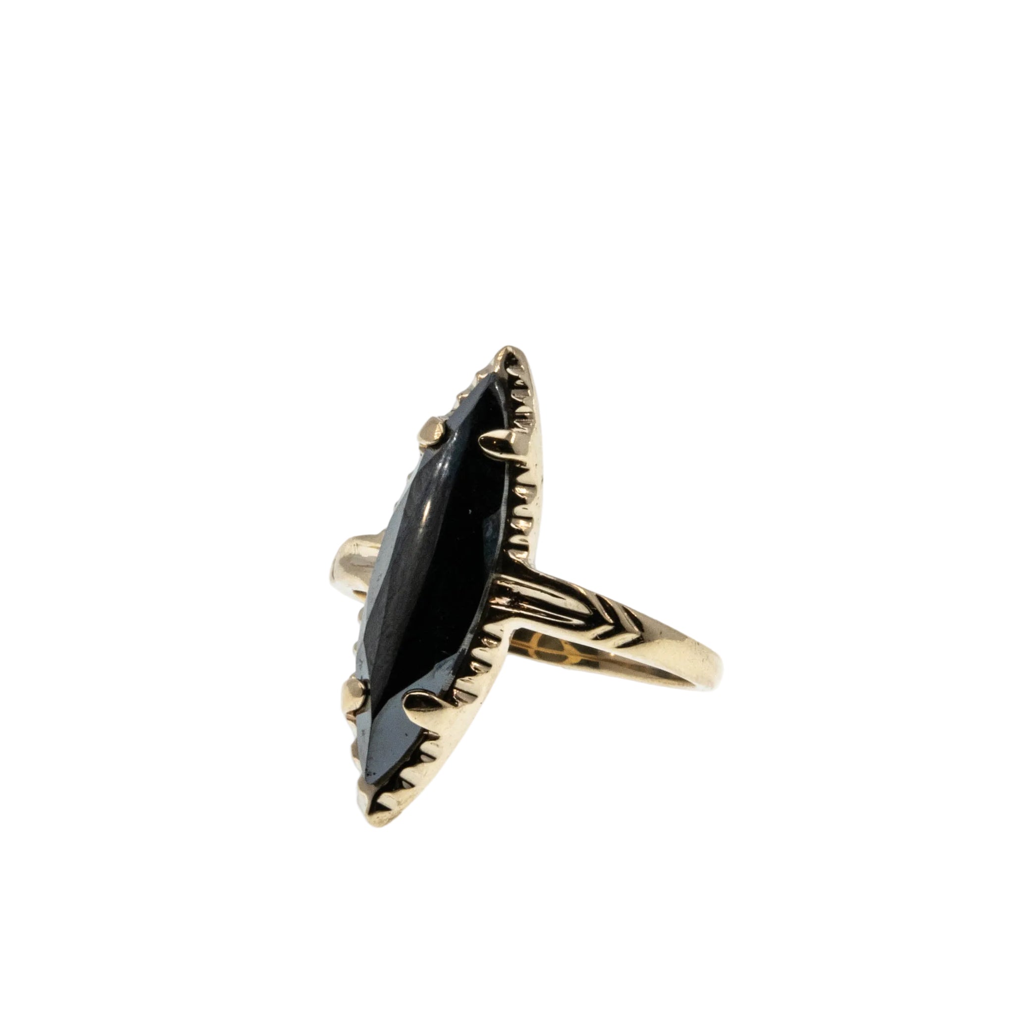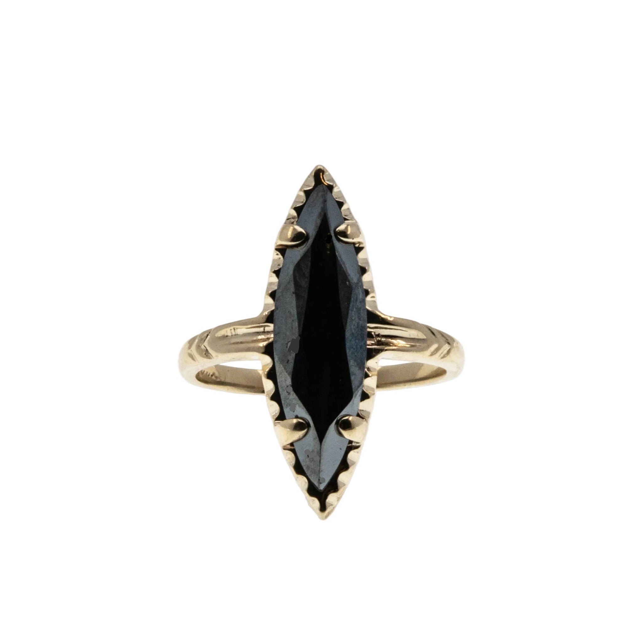 Marquise Elegance - Vintage 10K Gold Natural Black Alaskan Diamond Hematite Ring (VR1078)