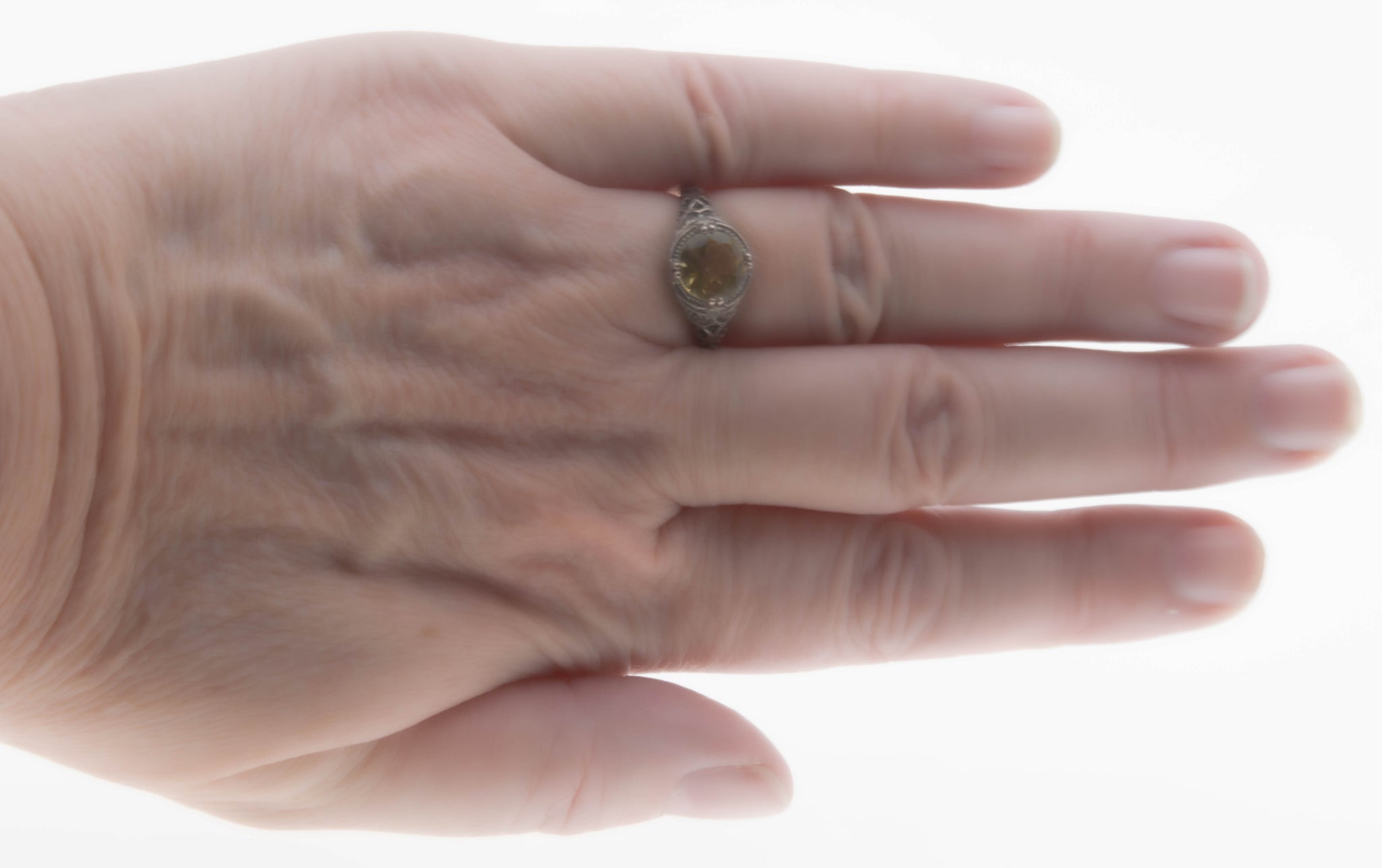 November Birthstone - Estate Sterling Silver natural Citrine Filigree Ring (ER438)