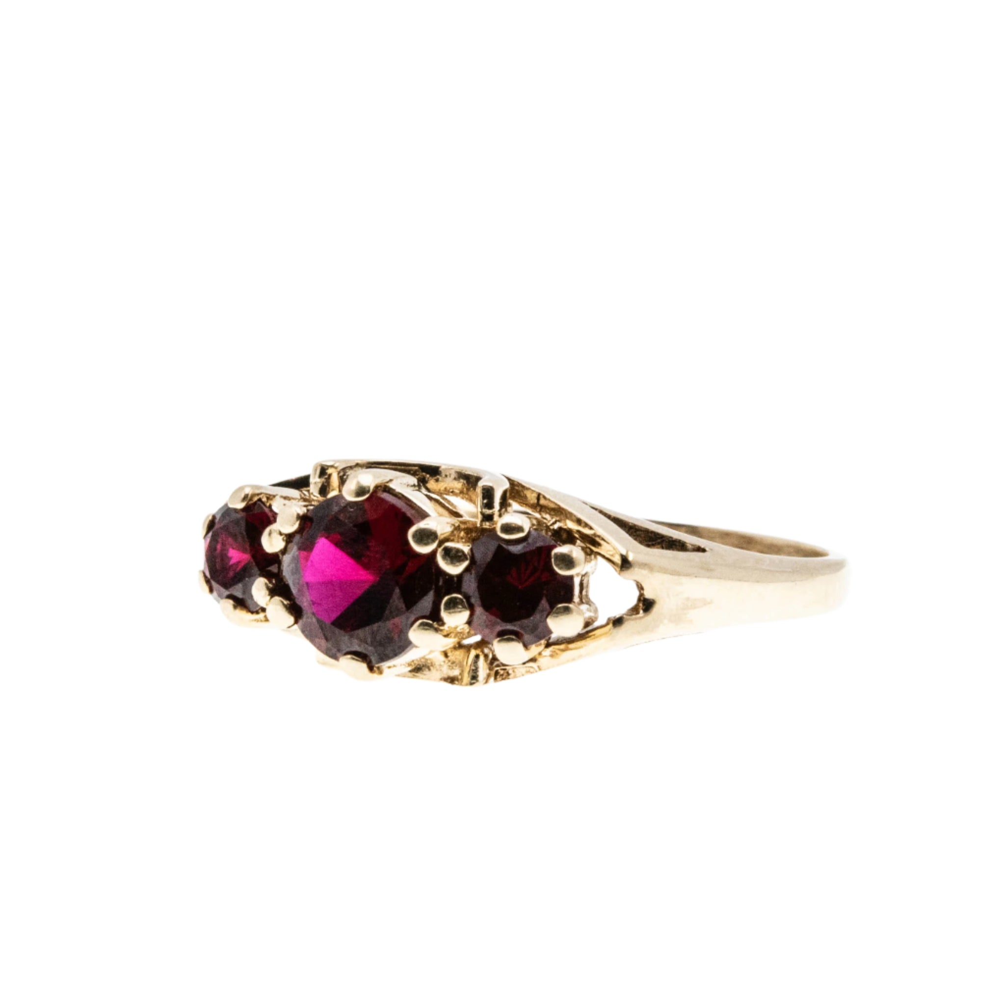 Red, Red, Wine - Vintage 10K Gold Synthetic Ruby Trio Ring (VR988)