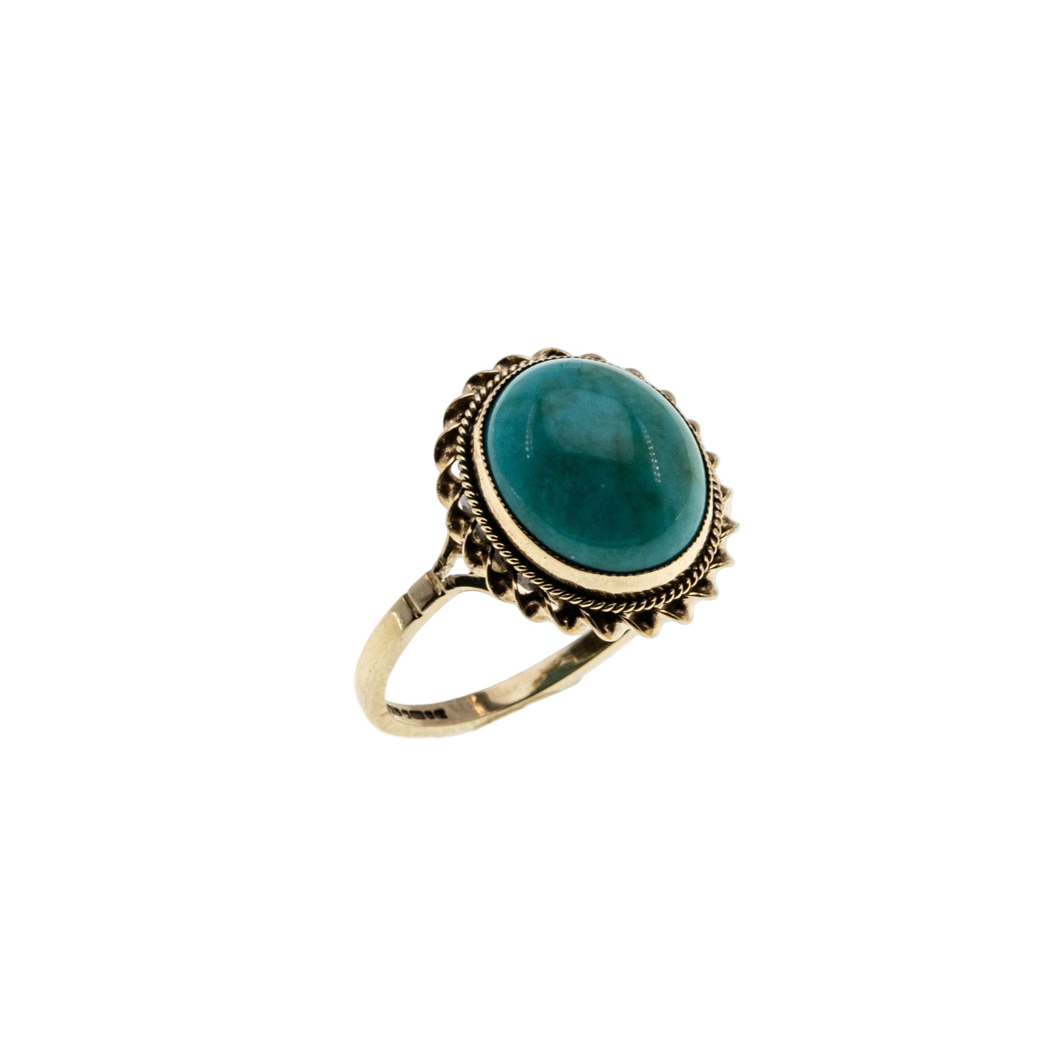 Robins Egg Blue - Vintage English 9K Gold Natural Turquoise Cabochon Ring (VR1027)