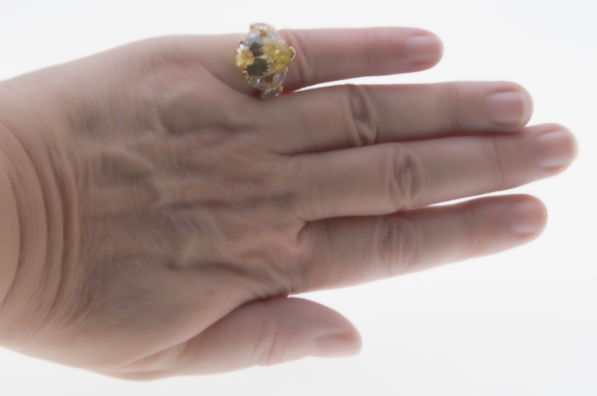 Canary Yellow Sparkler - Vintage Gold Plated Sterling Silver Cubic Zirconia Ring (VR1057)