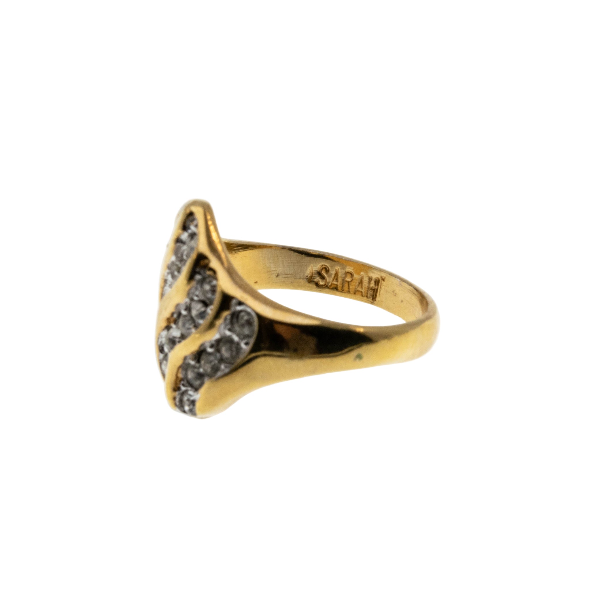 Catch A Wave - Vintage Signed 'Sarah Coventry' Gold Plated Crystal Rhinestone Ring (VR1060)