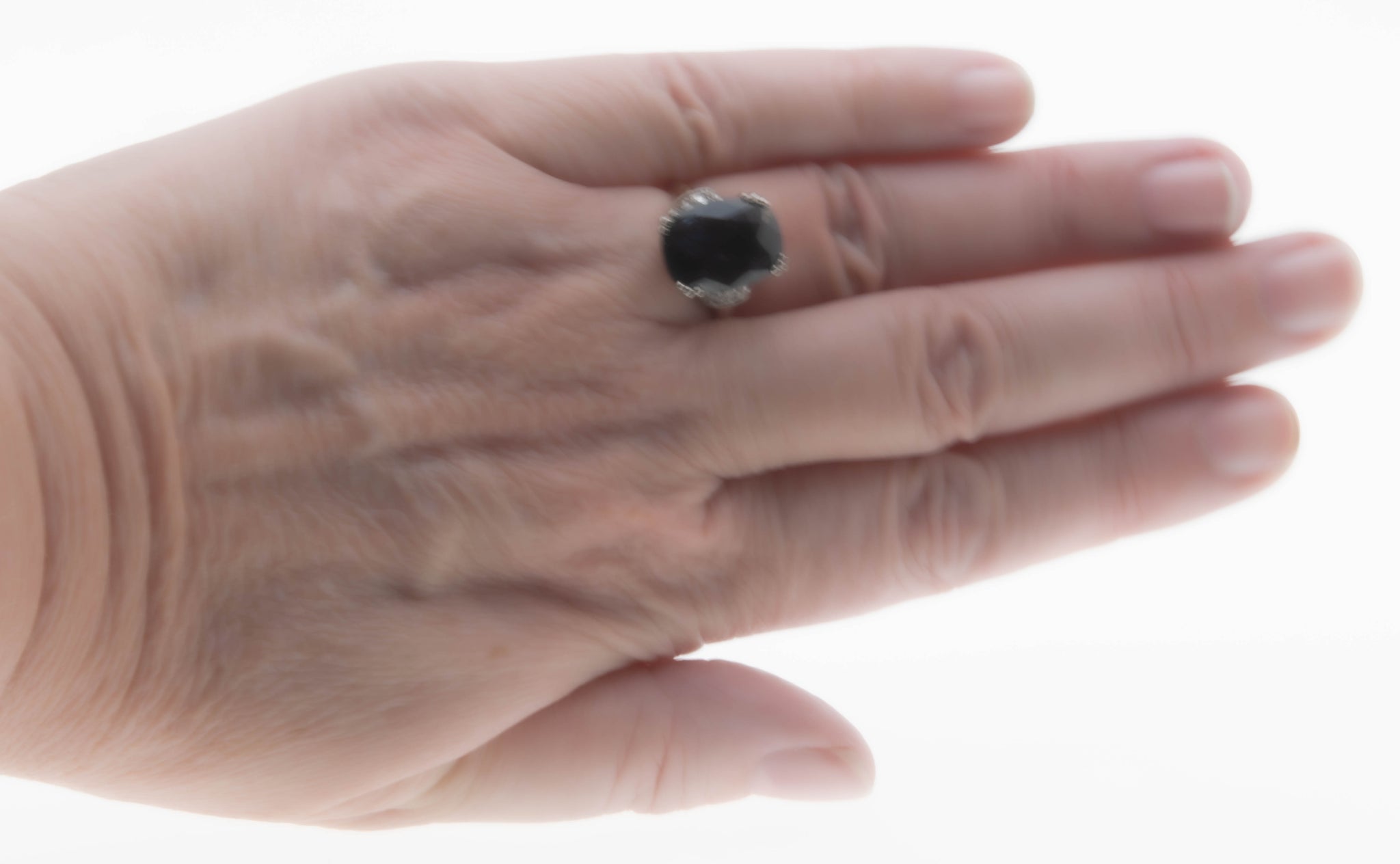 Condition: Excellent Note: When cleaning this blue spinel ring it should be treated the same way as an emerald. To clean dip the ring in a mixture of mild detergent and water, clean with soft toothbrush, rinse with warm water,, and dry immediately. No ultrasonic machines, or harsh chemicals.