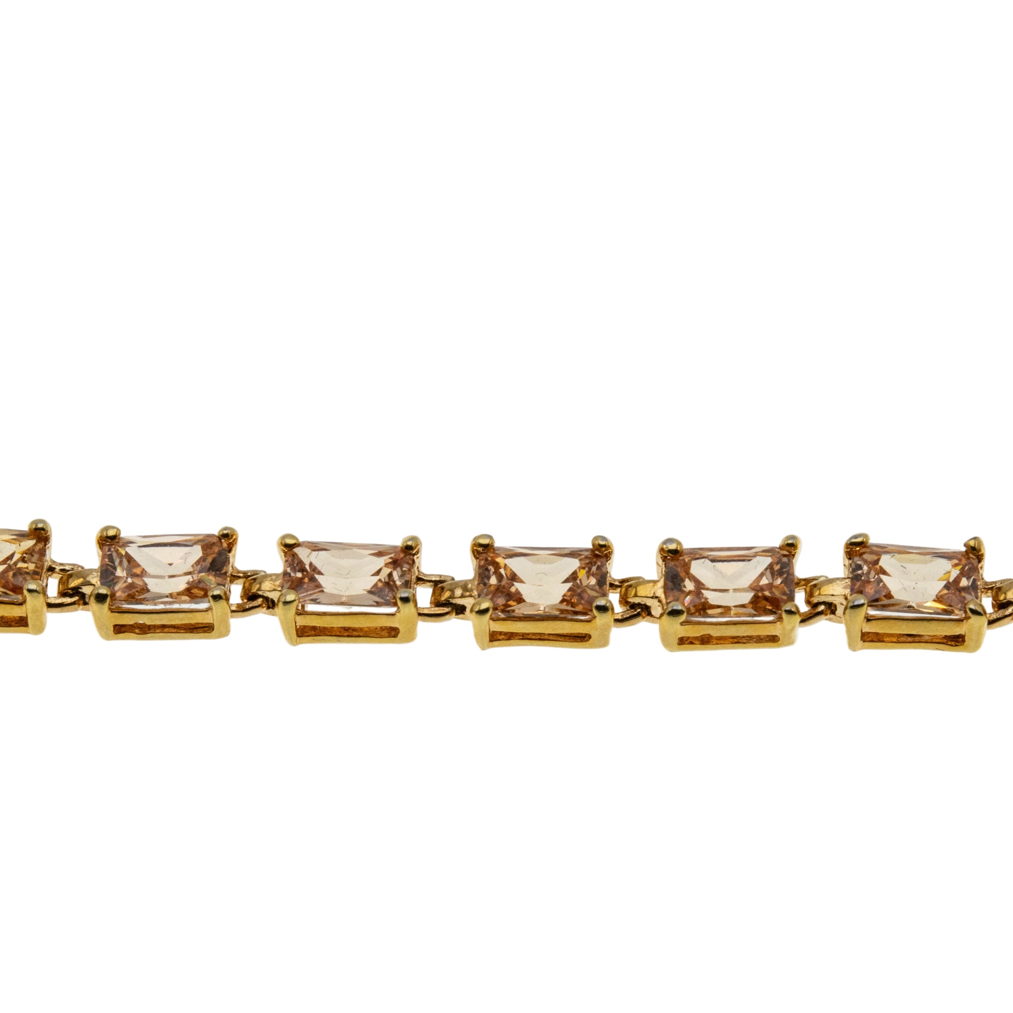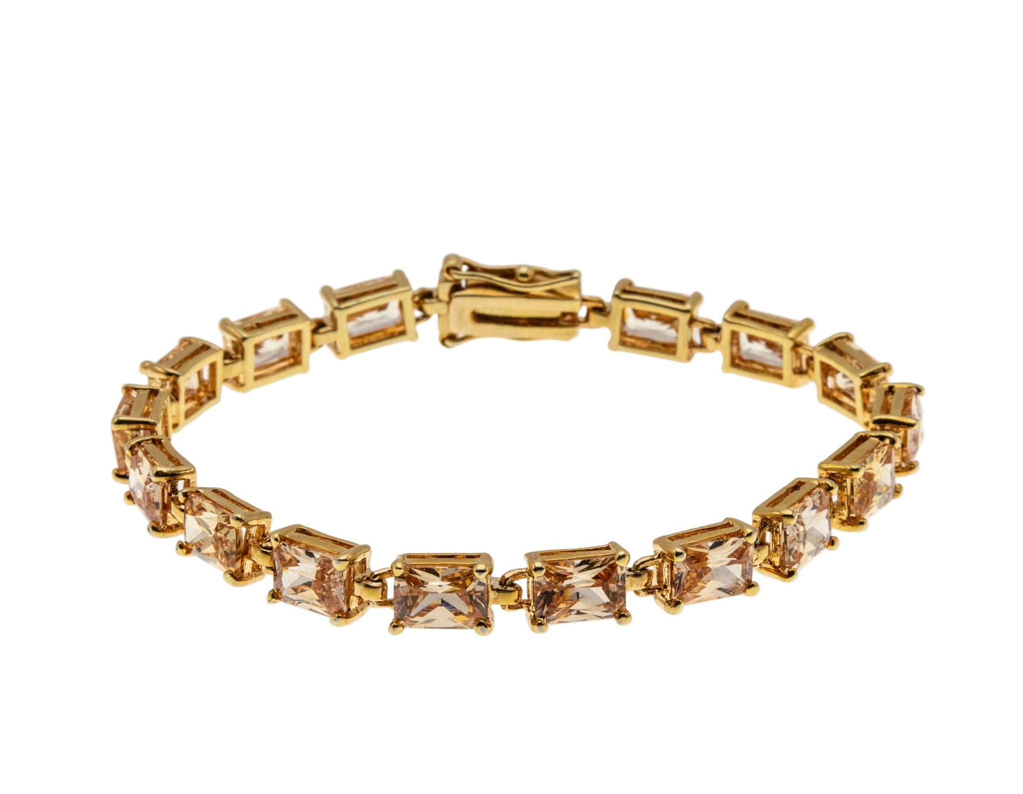 Imperial Princess - Vintage Gold Plated Imperial Topaz Coloured Princess Cut Cubic Zirconia Tennis Bracelet (VB136)