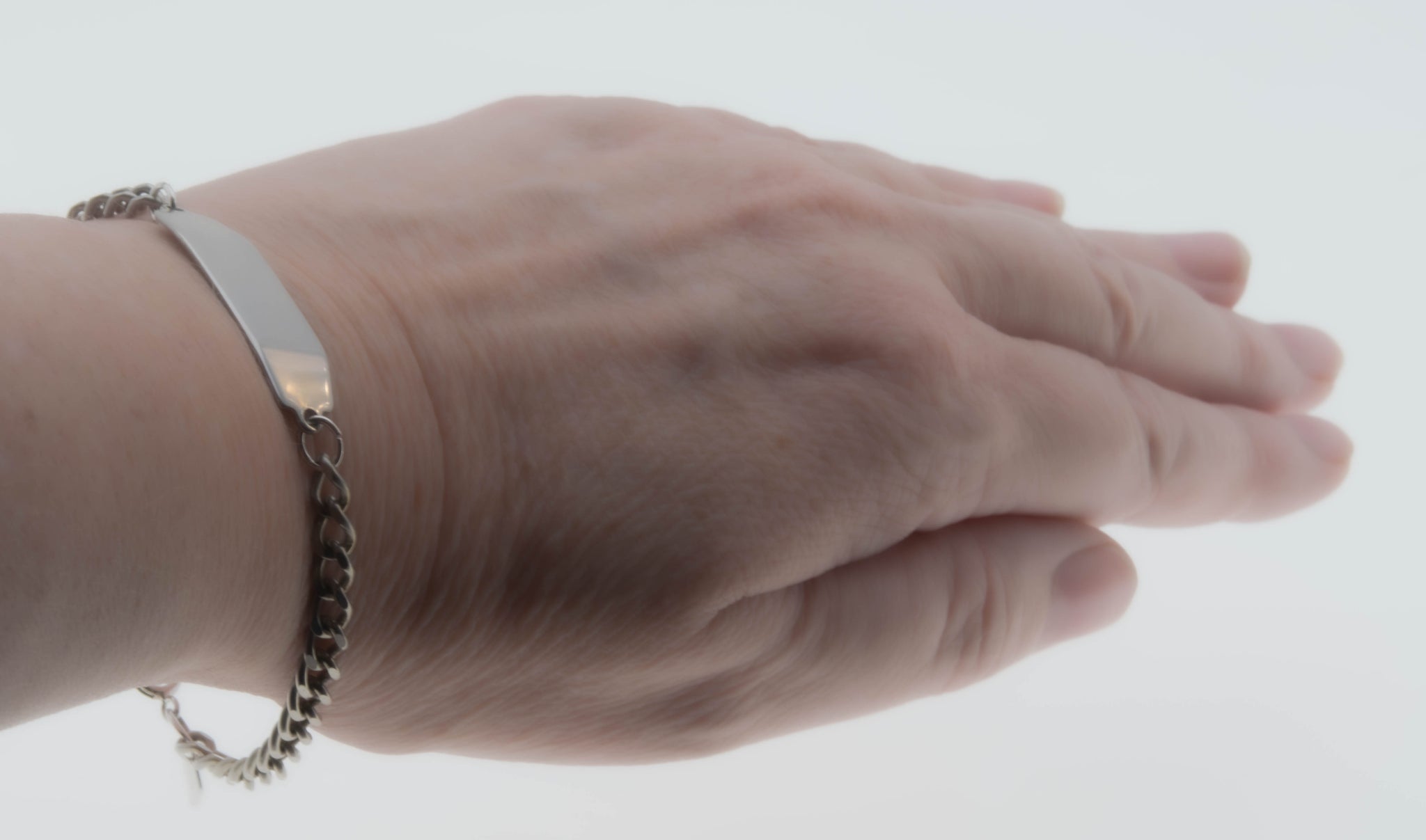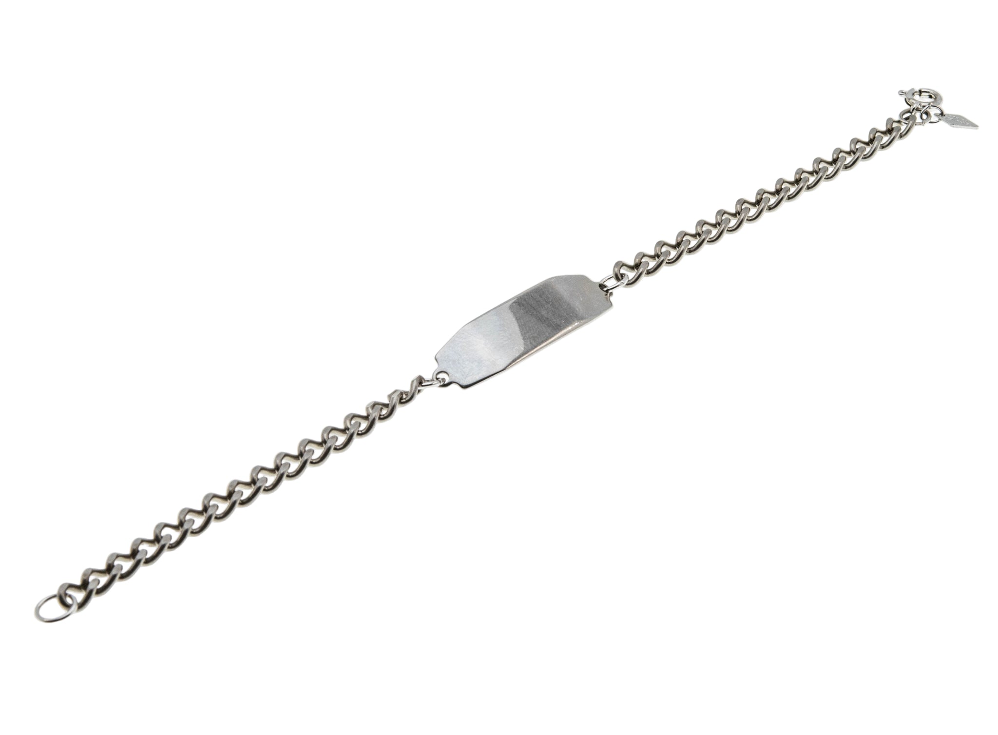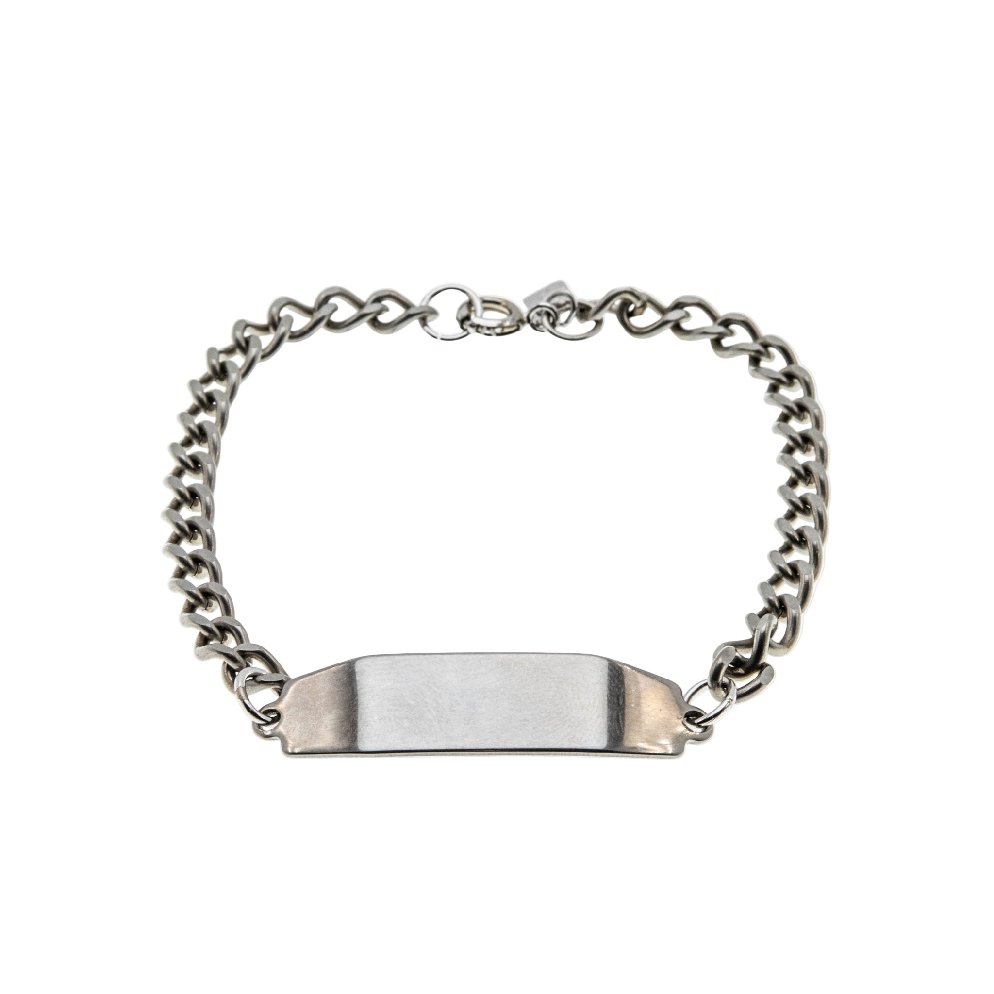 Le Blanc - Vintage Signed Sarah Coventry Silver Tone Metal ID Bracelet. This bracelet is crafted from a silver toned metal, signed Sarah Cov Canada. The bracelet features a classic design, and vintage styling. The bracelet is comprised of a blank plaque, which can be left blank or engraved, and a substantial curb chain link. The bracelet features a spring ring clasp, in perfect working order. This vintage bracelet would make a perfect gift, or addition to any jewelry collection.