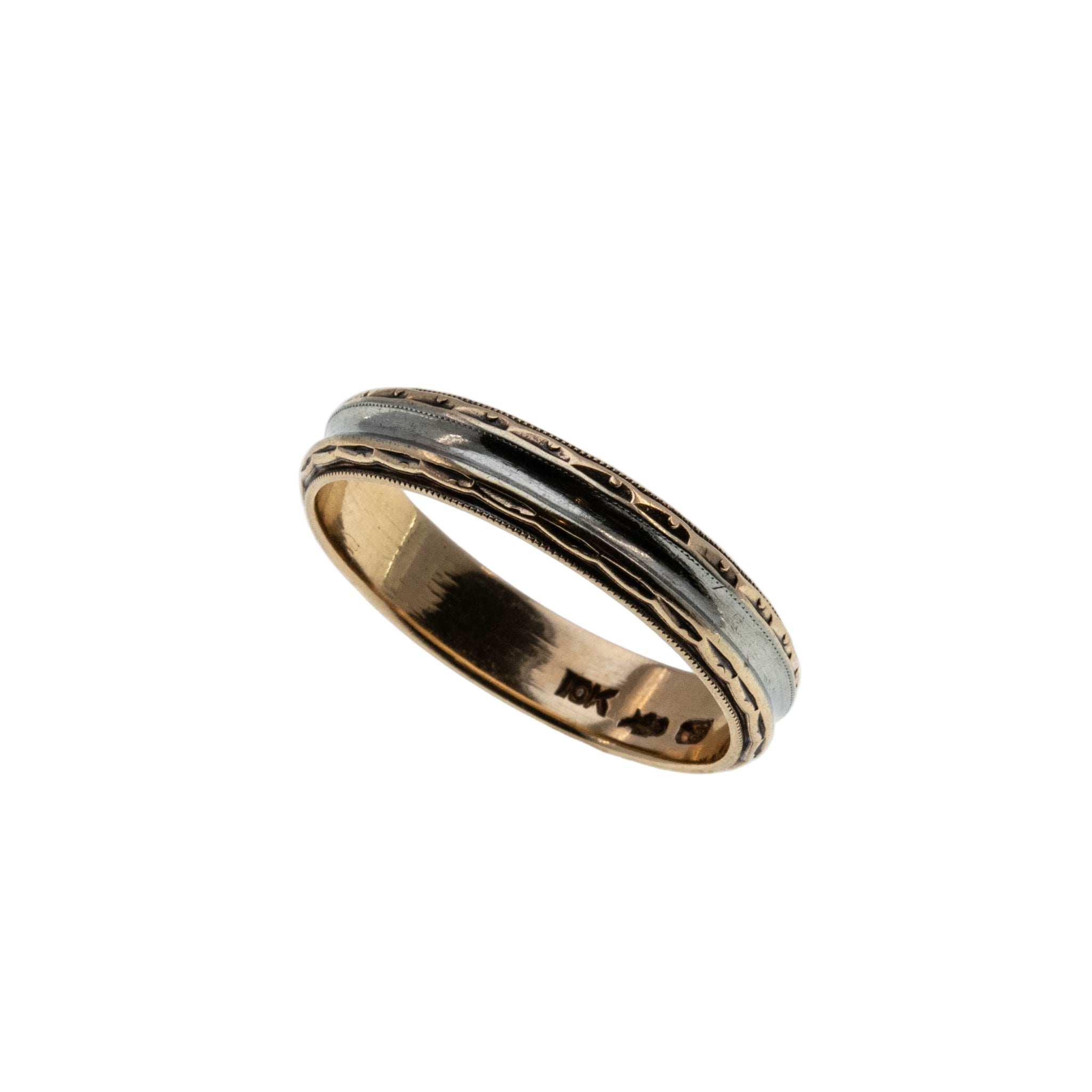 From This Day Forward - Vintage 10K Yellow & White Gold Engraved Milgrain Wedding Band Ring (VR1064)