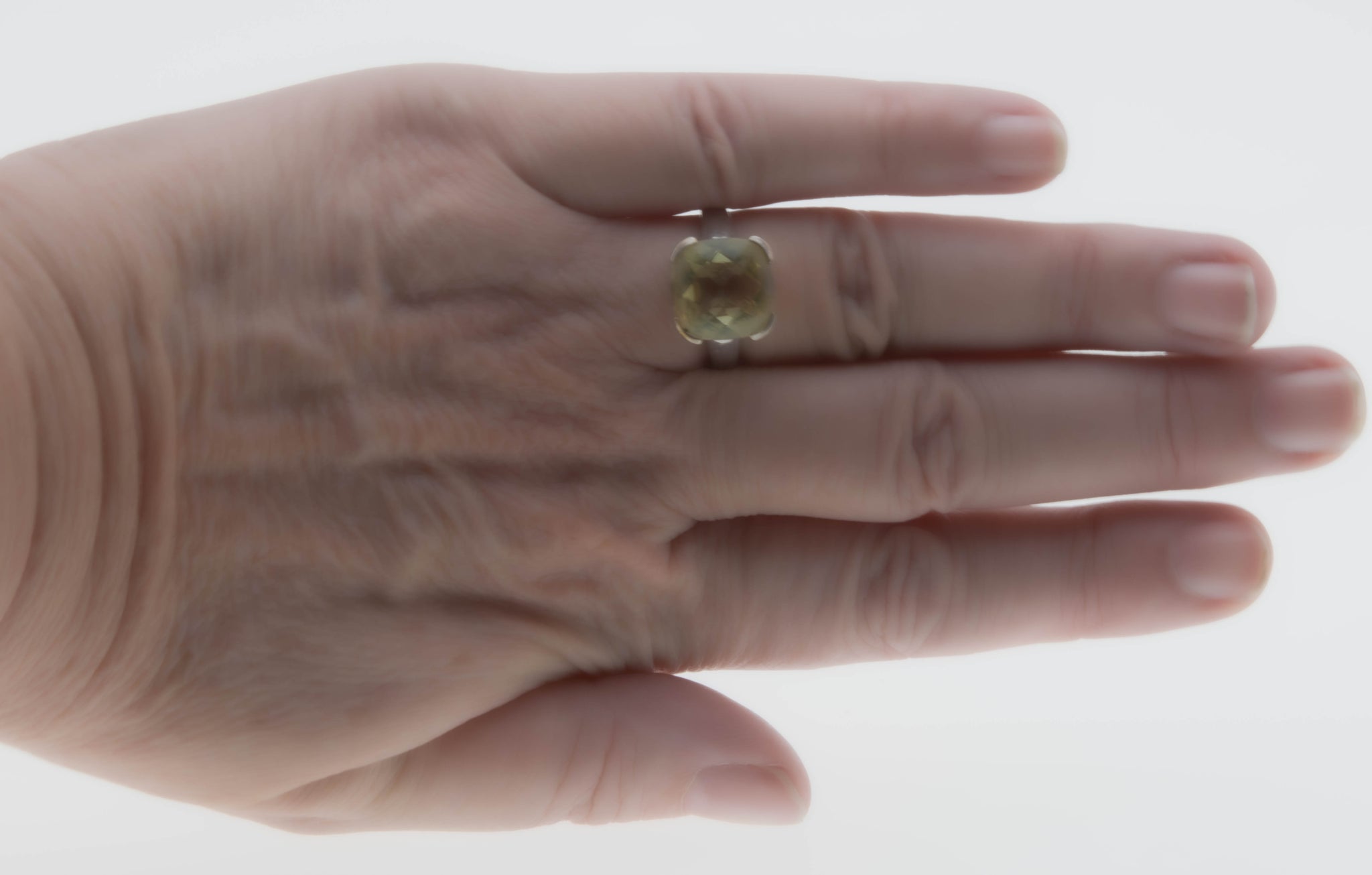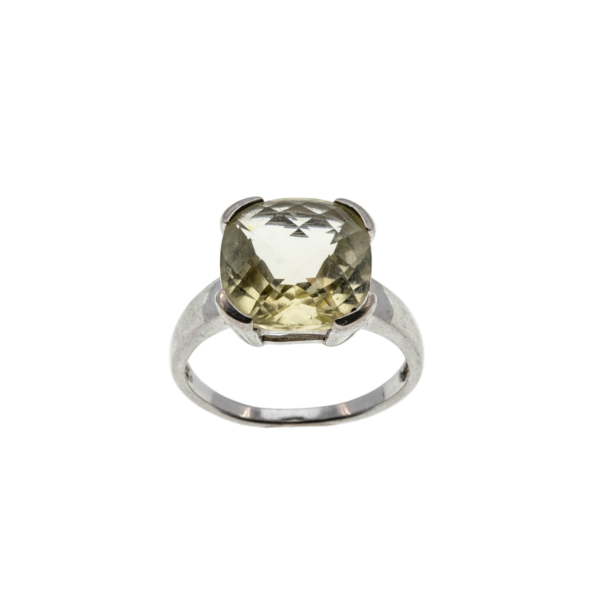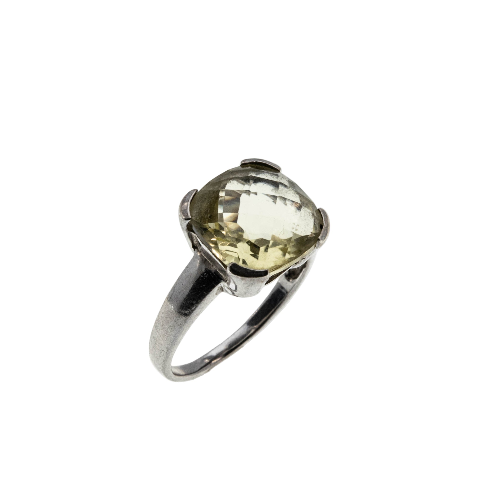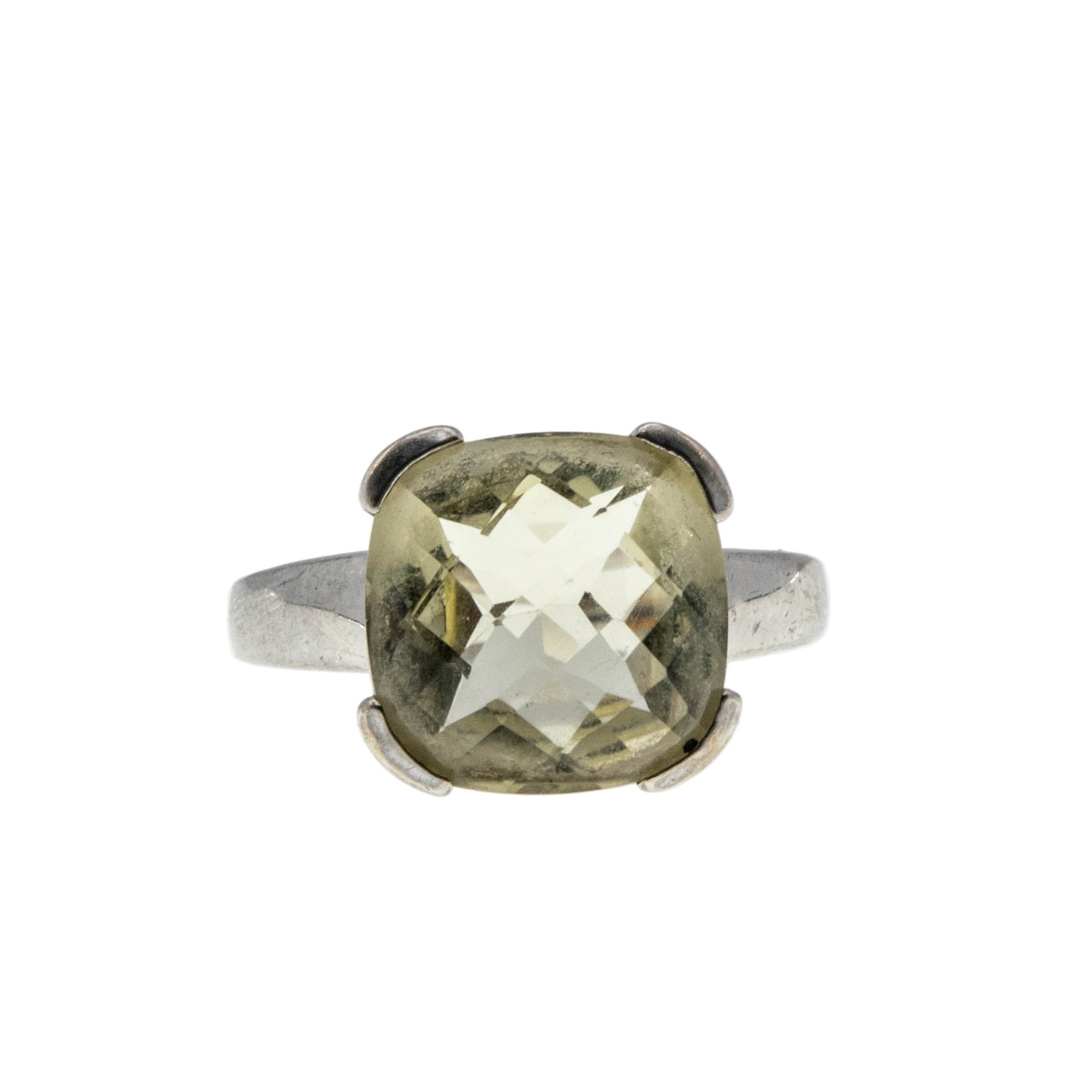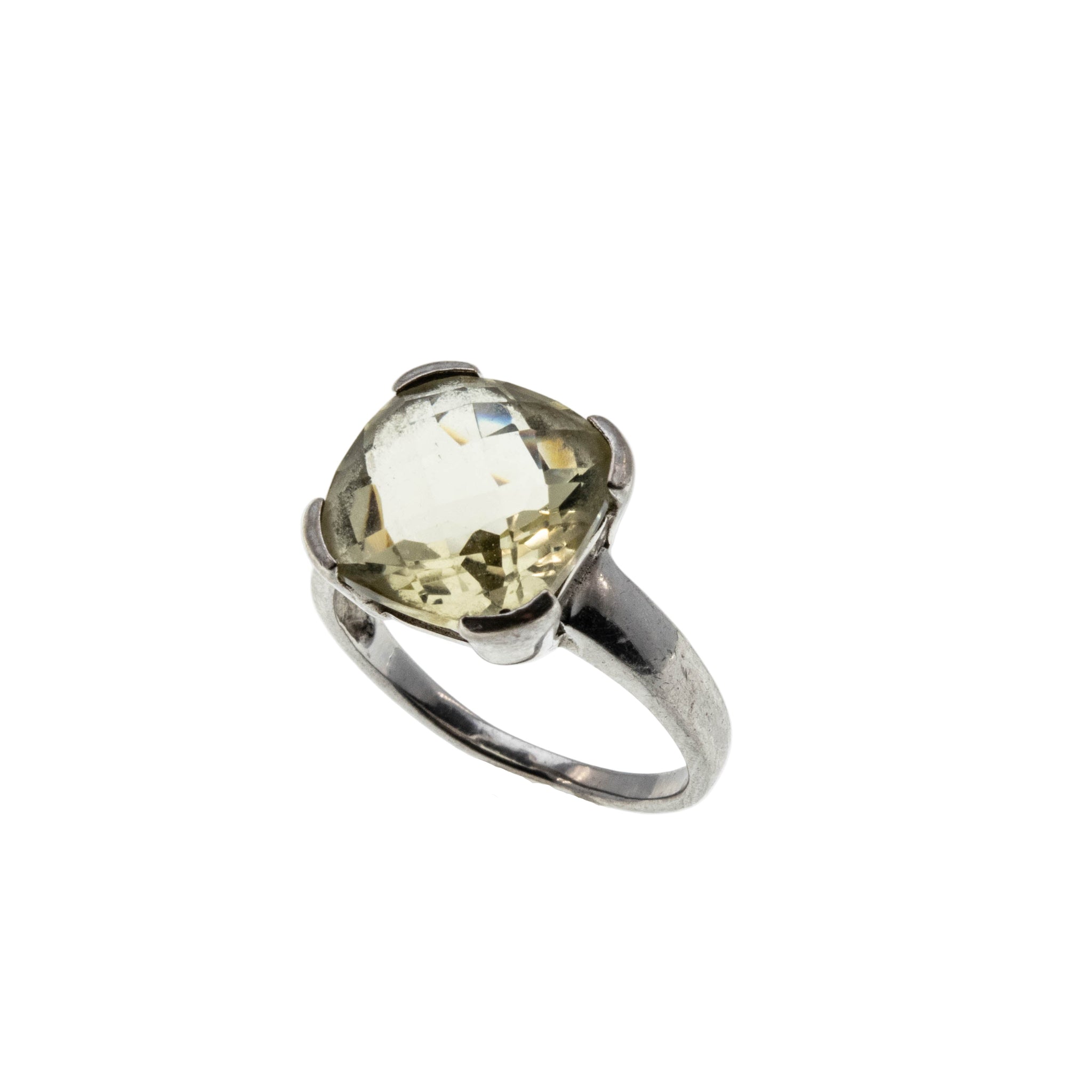 Mellow Yellow - Vintage Signed 'Sigel CA' Sterling Silver Natural Lemon Quartz Solitaire Ring. This lovely ring is crafted in sterling silver, hallmarked 925 for sterling, and a makers mark Sigel CA. This ring features one natural fancy cut lemon quartz, classic styling, and quality craftsmanship. The gallery on this ring is expertly claw-set with a beautiful delicate yellow coloured lemon quartz gemstone, displaying yellowish/greenish hues. The band has a slight taper, and is smooth, and polished, which allows for a comfortable fit, and easy sizing. This vintage ring would make a great addition to any jewelry collection.