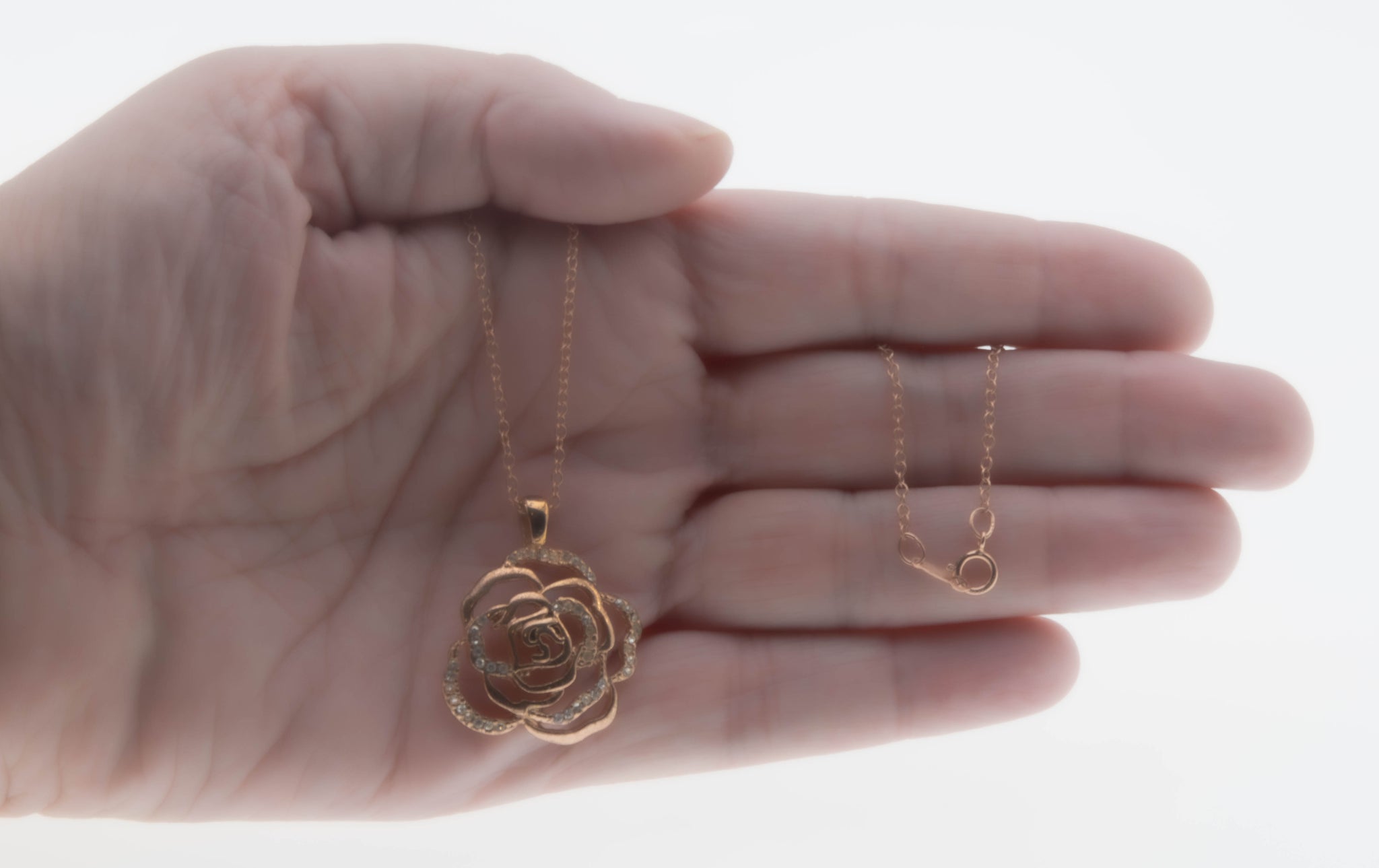 A Rose For You - Estate Rose Gold Plate Crystal Rhinestone Pendant & 14K Rose Gold Fill Chain (EP081)
