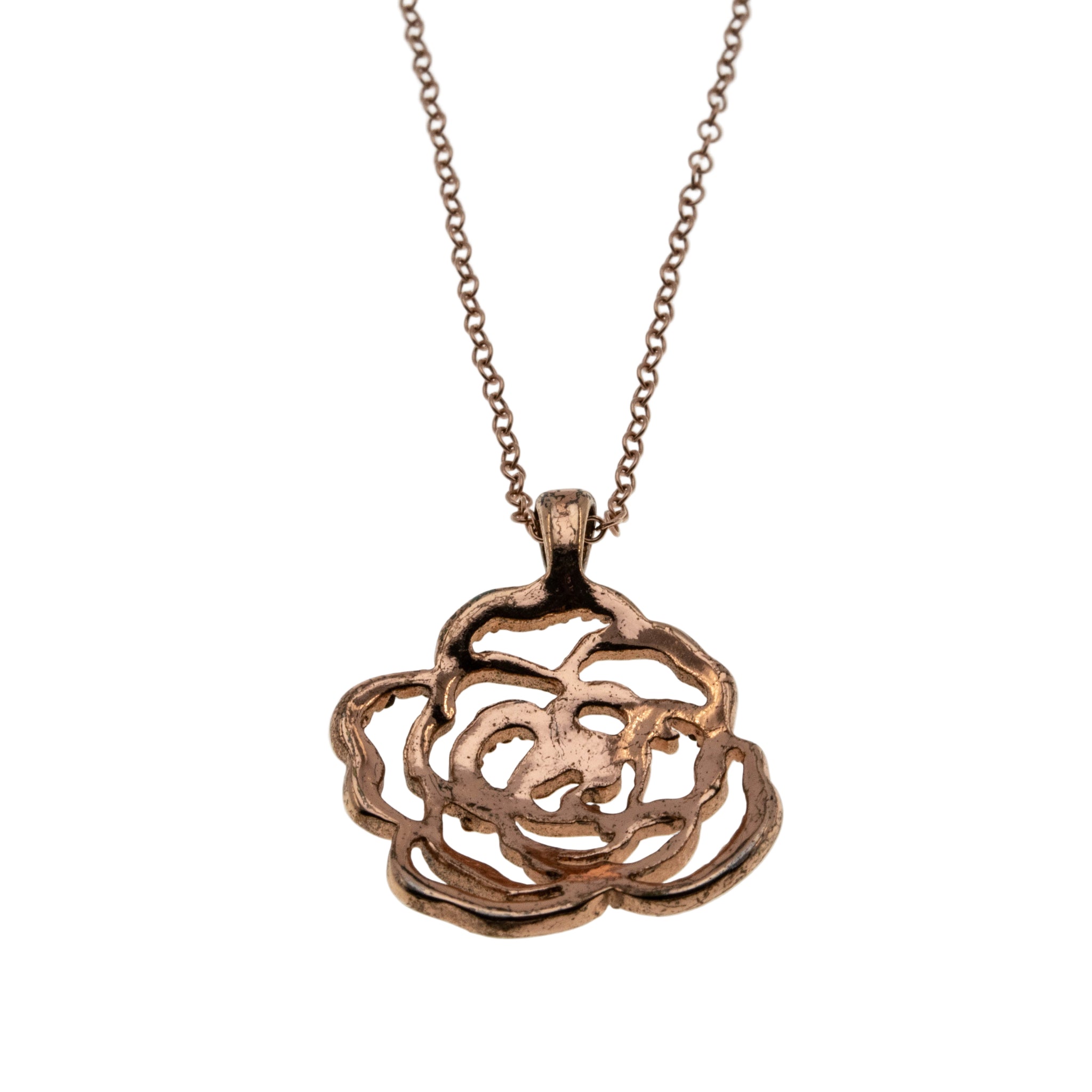 A Rose For You - Estate Rose Gold Plate Crystal Rhinestone Pendant & 14K Rose Gold Fill Chain. This lovely pendant is crafted from rose gold plate over metal, and the chain is crafted from 14K rose gold fill. The pendant features numerous crystal round cut rhinestones, and a modernistic take on a classic design. This pendant is created in the form of a rose, which showcases lovely open-work, and sparkling crystals. The necklace is matched up to a rose gold coloured belcher style chain, which looks perfect with the pretty rose pendant. The chain features a secure spring ring clasp, in perfect working order. This estate pendant looks wonderful when worn, feminine, and so versatile.