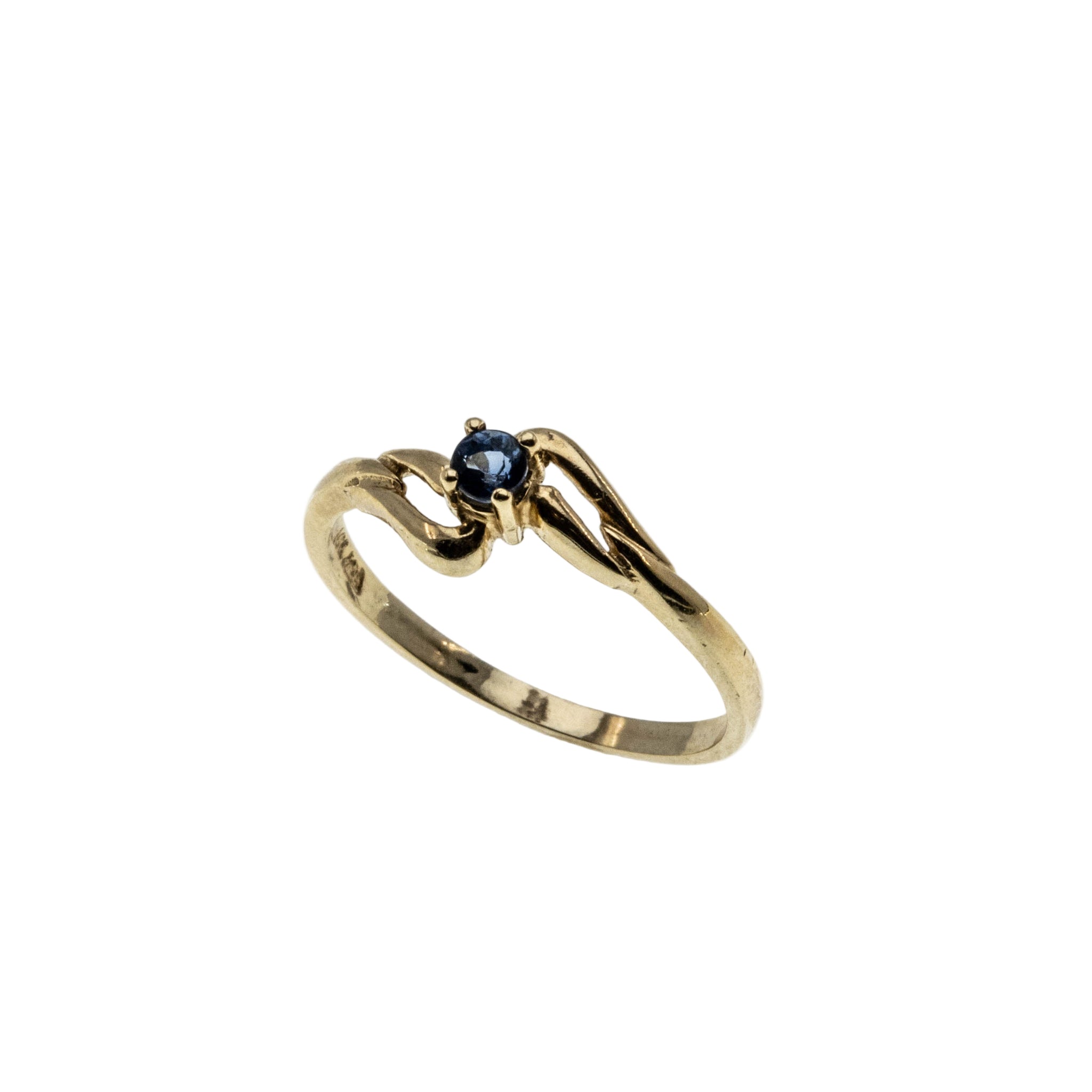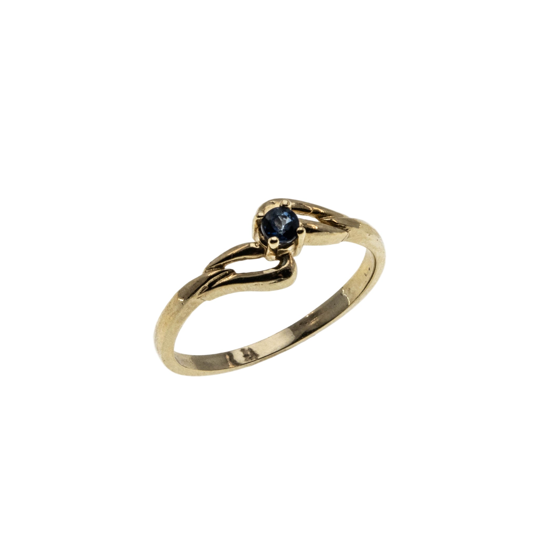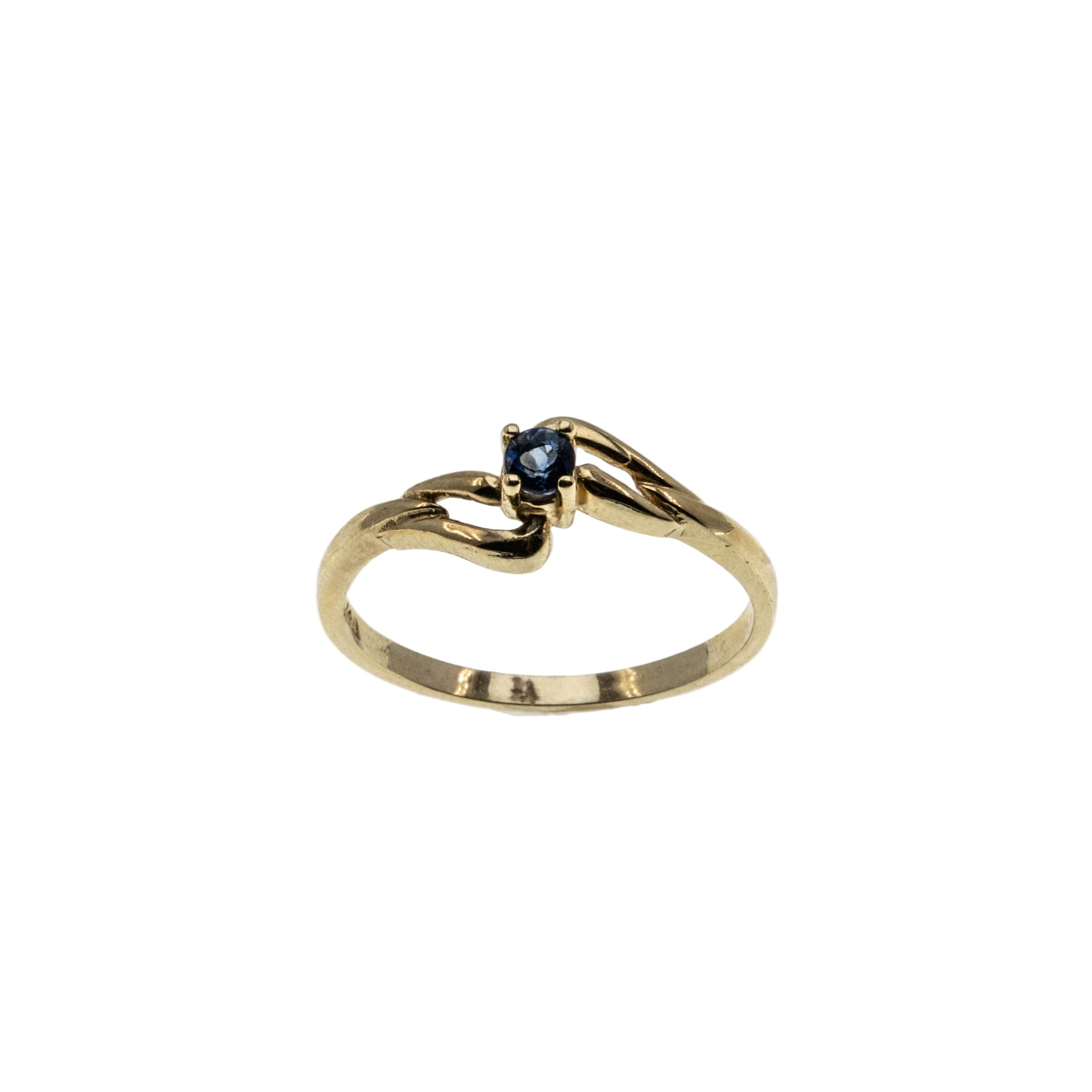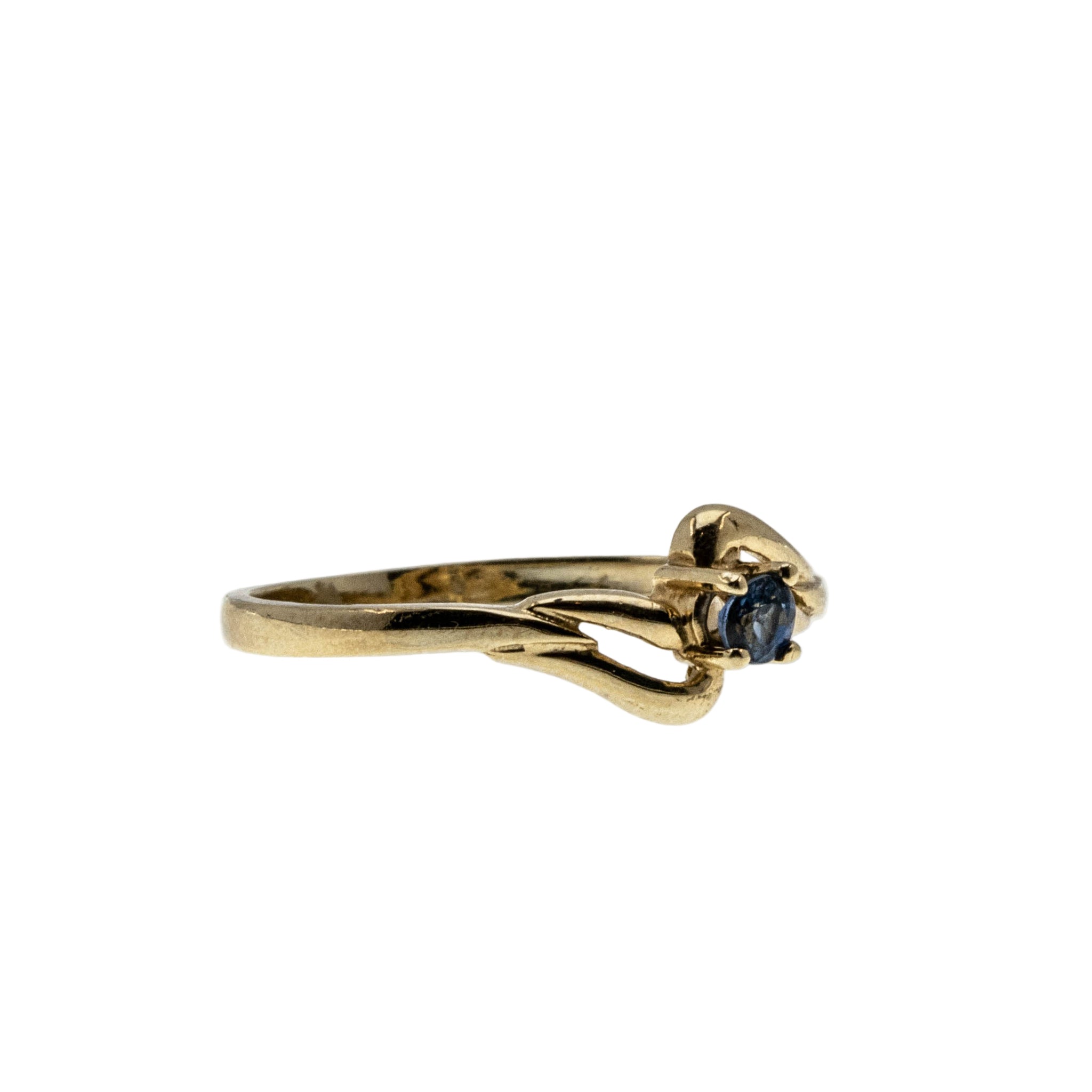 A Touch Of Blue - Vintage 10K Gold Natural Sapphire Bypass Swirl Ring. This pretty ring is crafted from 10K yellow gold, hallmarked 10K. The ring features one natural round cut faceted sapphire, vintage styling, and quality craftsmanship. The gallery on this ring is expertly claw-set with a beautiful indigo blue sapphire, displaying bluish/greenish hues. The ring exhibits a high polished finish, which looks perfect against the deep blue sapphire. The shoulders are a bypass design, which leads down to a smooth and polished shank, this allows for a comfortable fit and easy sizing. This pretty vintage ring is dainty, yet sturdy for daily wear.