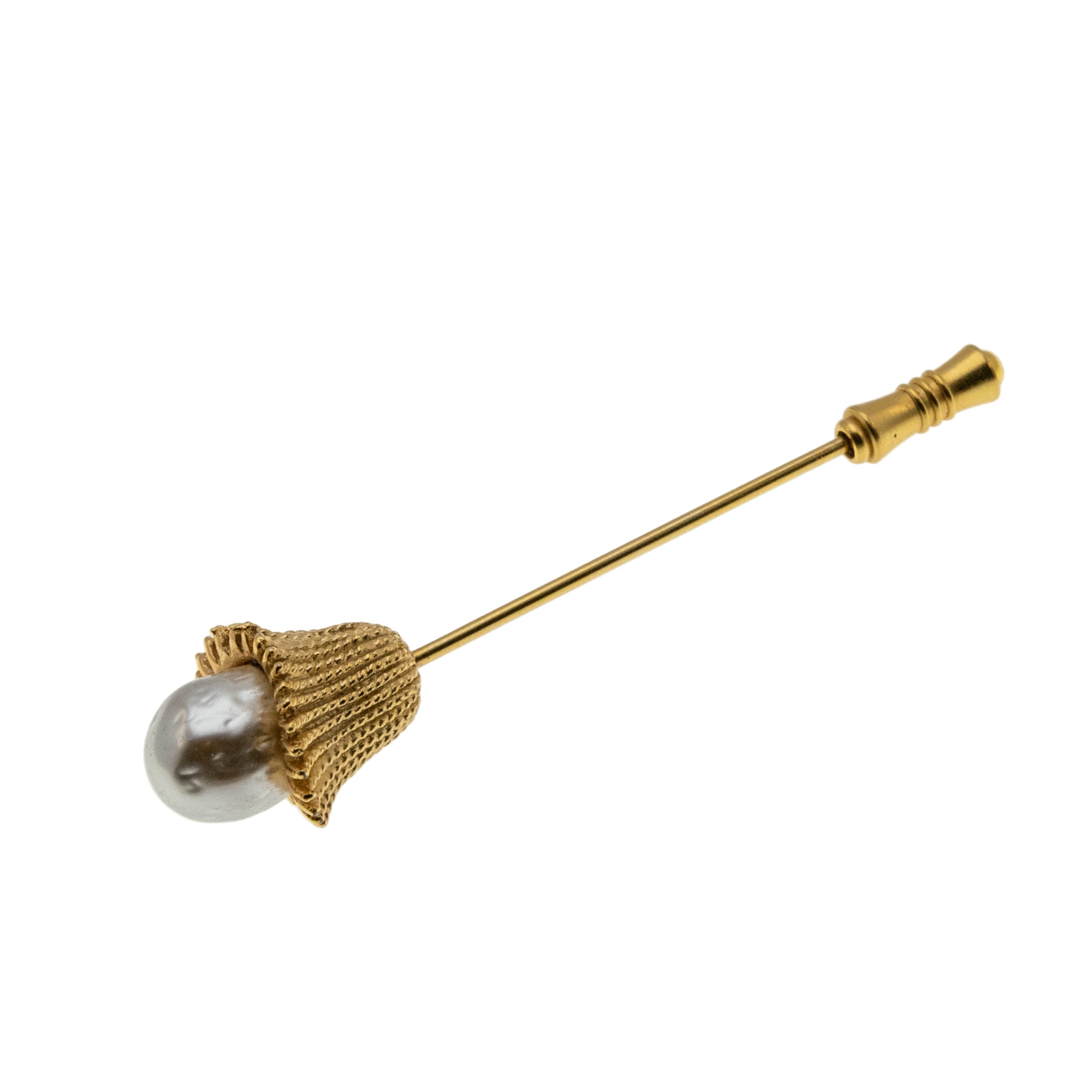 Couture & Elegance - Vintage Gold Plated Baroque Pearl Flower Stick Pin Brooch (VBR315)