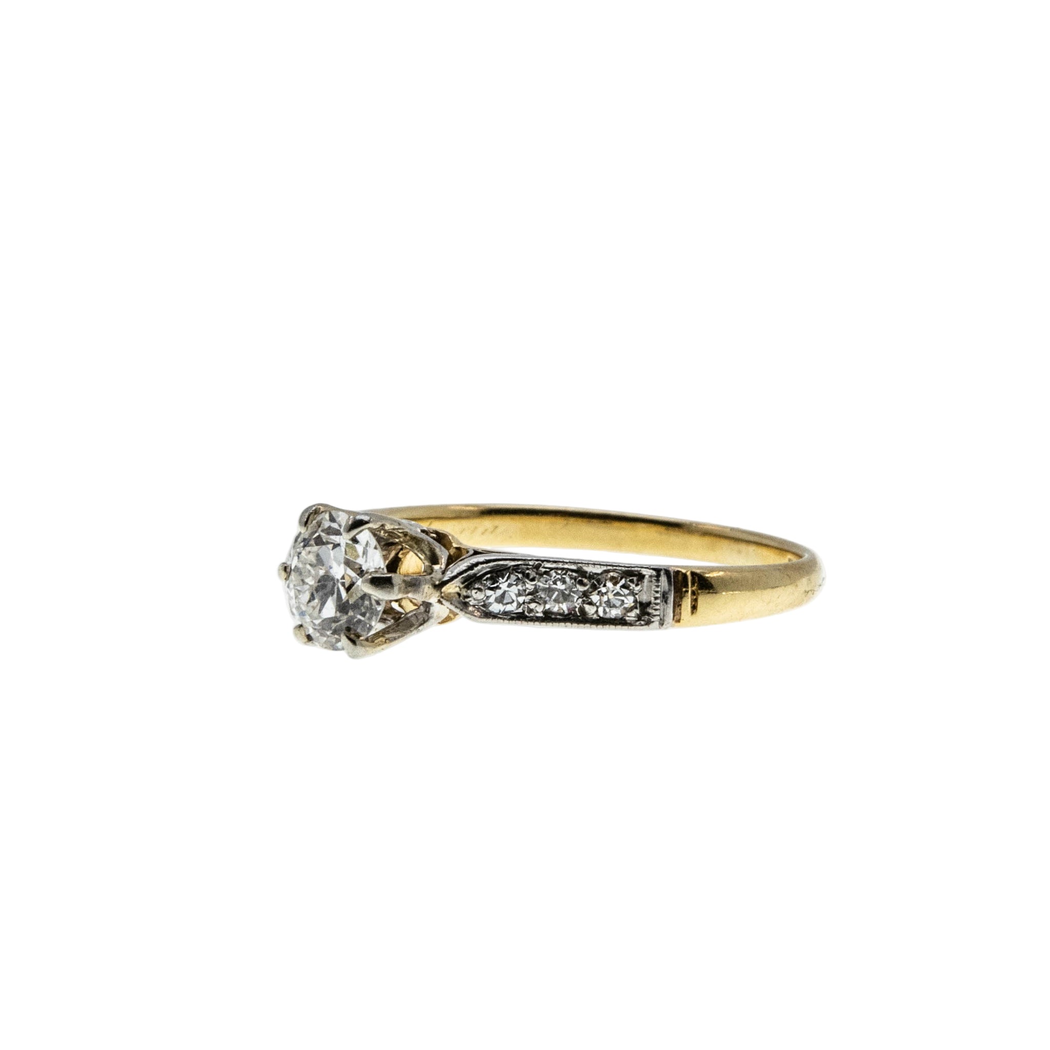 Stone Size: Diamond (Old European Cut Centre Diamond ) .47 carats Diamonds(Old European Cut Side Diamonds) .12 carats Total .59 carats