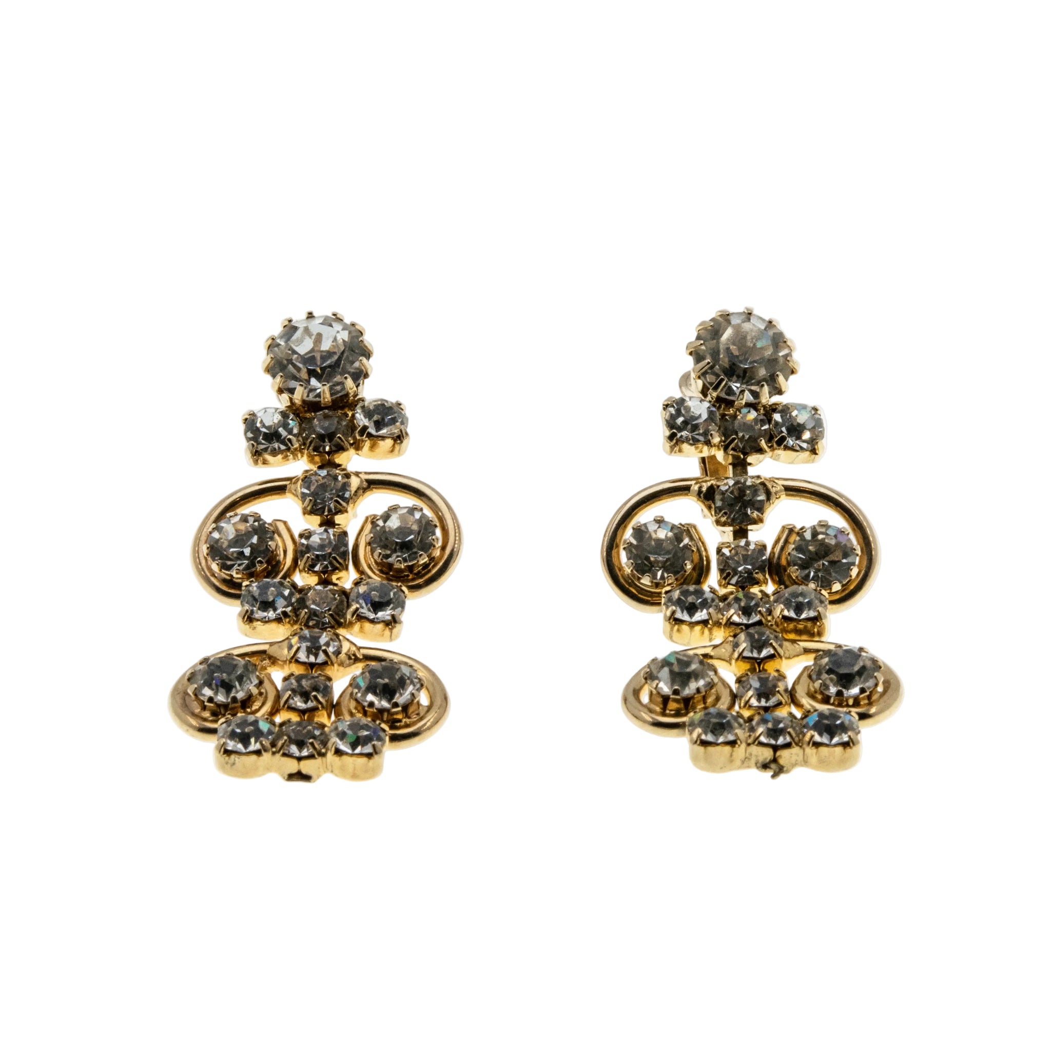 Girls Night Out - Vintage Signed Sarah Coventry Gold Plated Crystal Rhinestone Clip-On Earrings (VE499)
