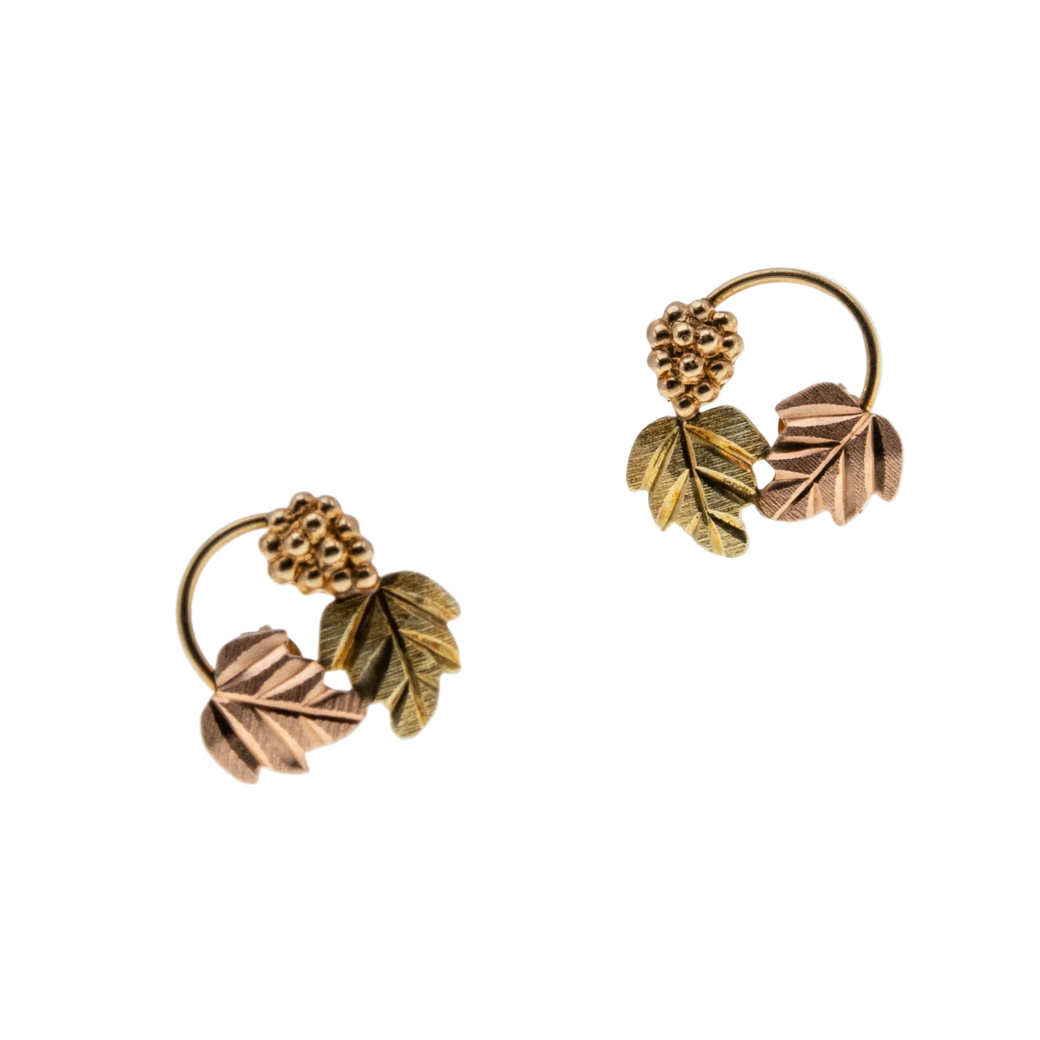 Grapes & Vines - Vintage Signed 'Coleman Co.' 10K/14K Black Hills Rose & Yellow Gold Stud Earrings (VE496)