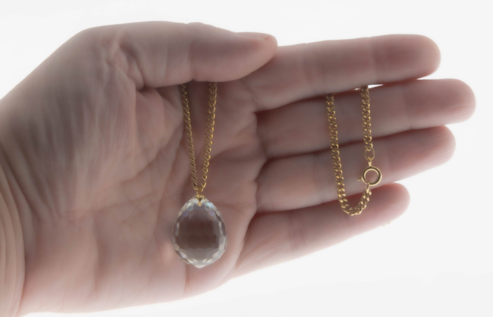 Prediction - Vintage Gold Plated Tear-Drop Crystal Briolette Pendant & Chain (VP270)