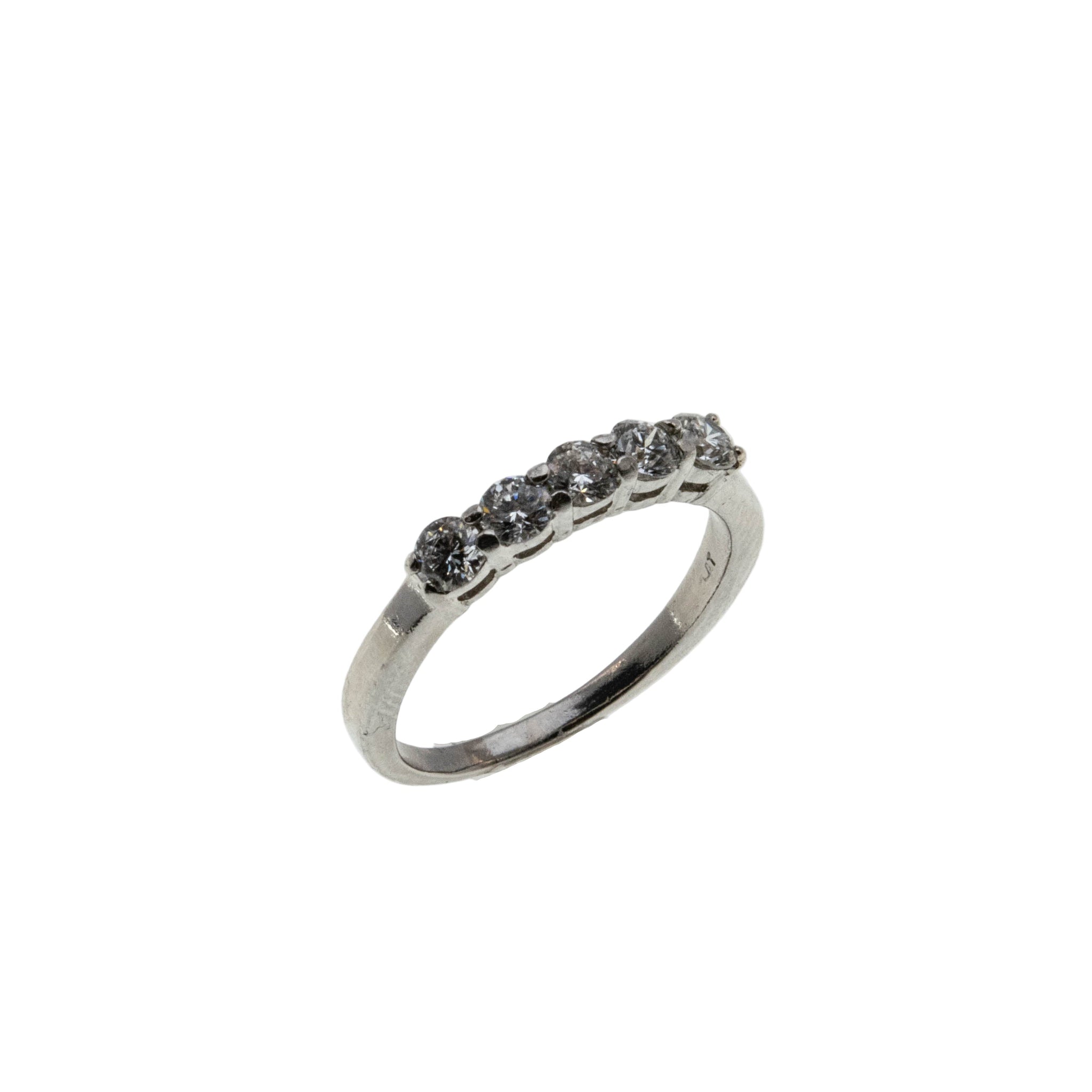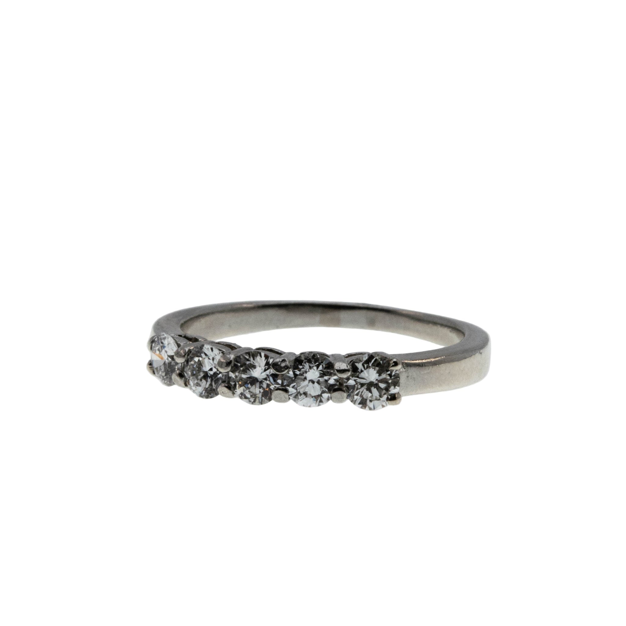 All In White - Vintage Platinum Natural Diamond Wedding/Anniversary Ring. This exquisite ring is crafted from platinum, hallmarked PLAT. The ring features 5 natural round brilliant cut diamond, vintage classic styling, and quality craftsmanship. The gallery on this ring is expertly set with a row of beautiful sparkling diamonds, which are expertly claw-set in platinum. The band is dainty, yet substantial and solid for daily wear. The shank is smooth, and polished, which allows for a comfortable fit and easy sizing. This gorgeous Vintage ring would make a lovely wedding or anniversary ring, gift or great addition to any fine jewelry collection.